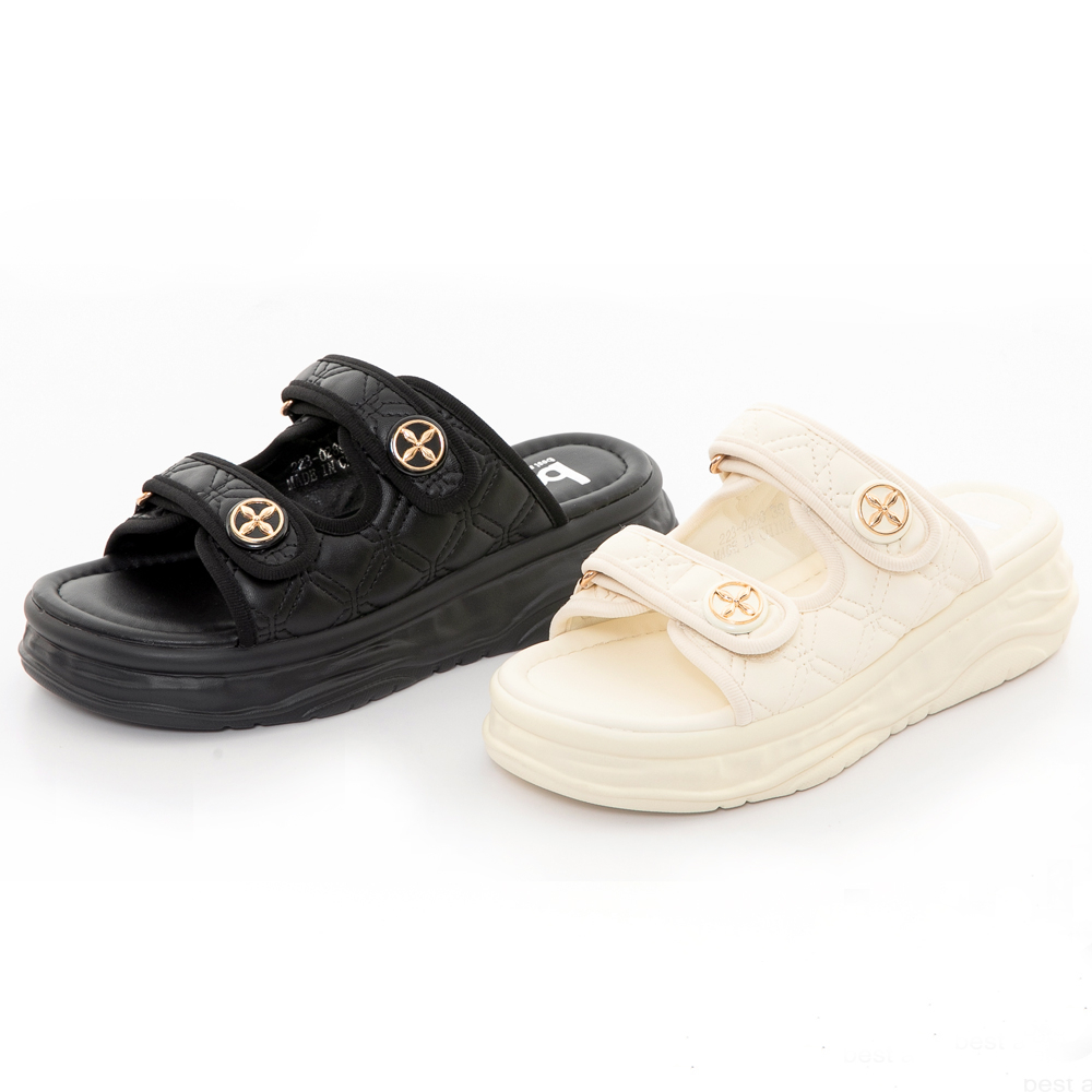 【bac】小香風格衍縫厚底涼拖鞋223-028