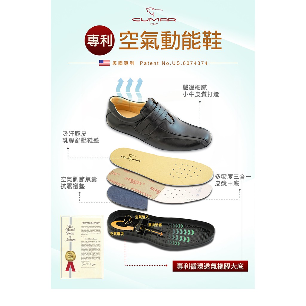 【CUMAR】商務菁英 真皮魔術貼氣墊鞋 - 黑色820-501