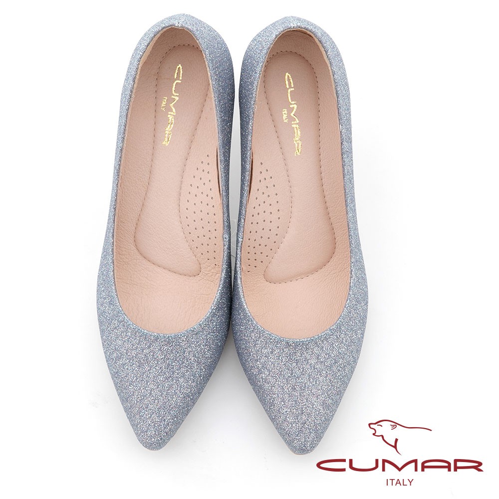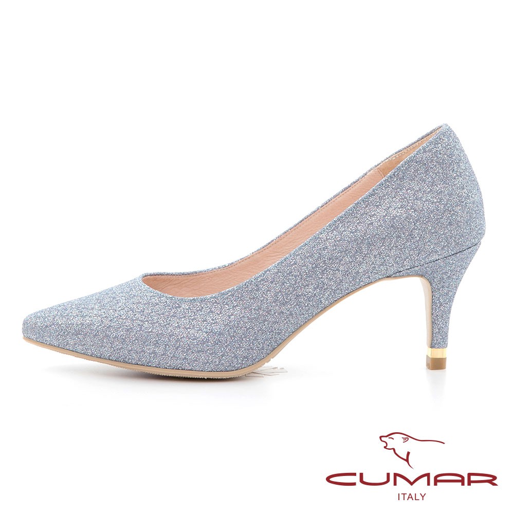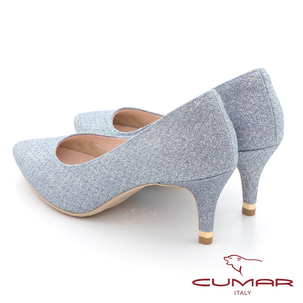 【CUMAR】尖頭閃耀花紋金屬裝飾高跟鞋 - 藍色721-106