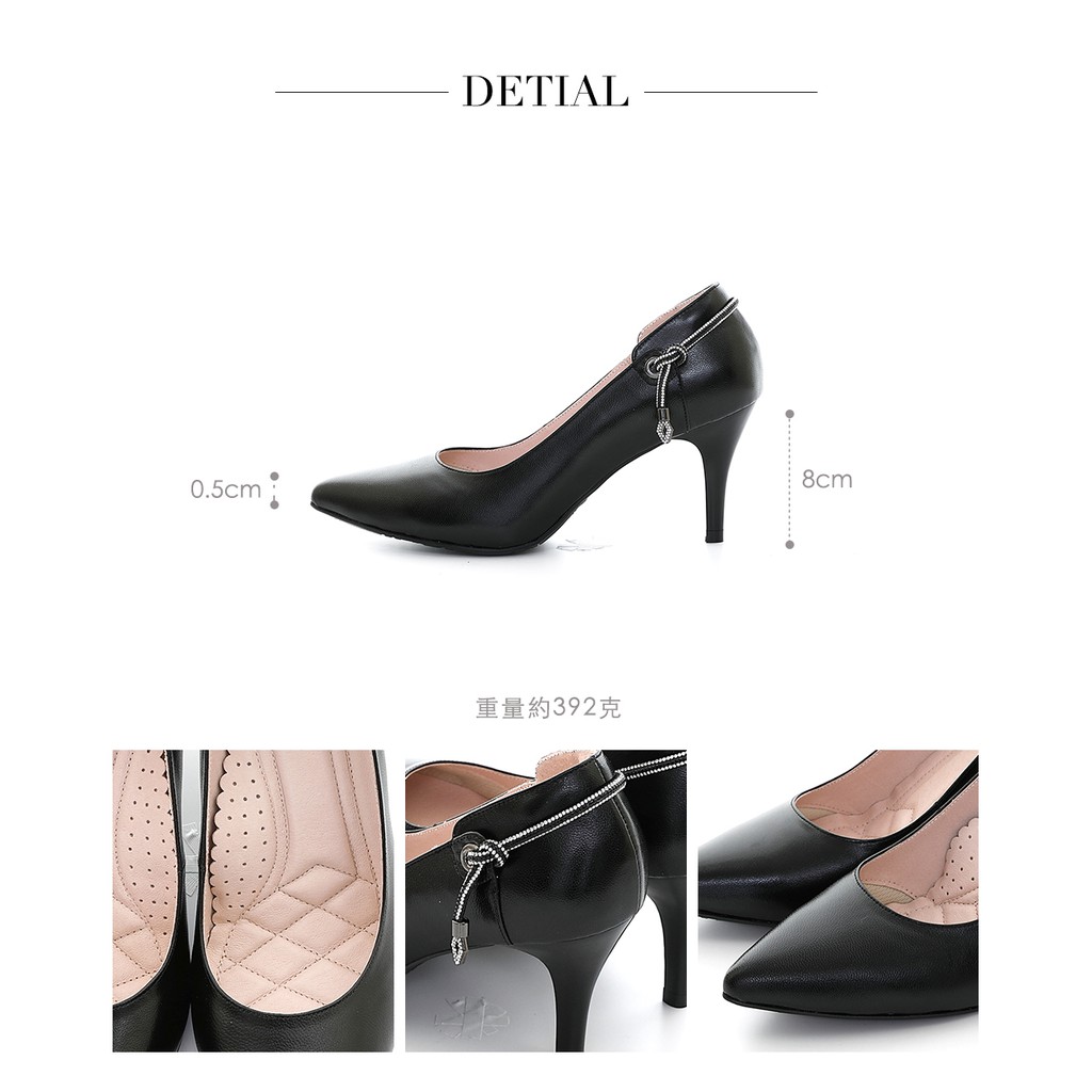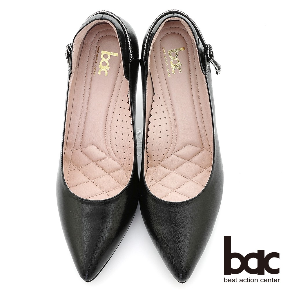 【bac】素雅尖頭鑽飾條裝飾高跟鞋-黑色220-543
