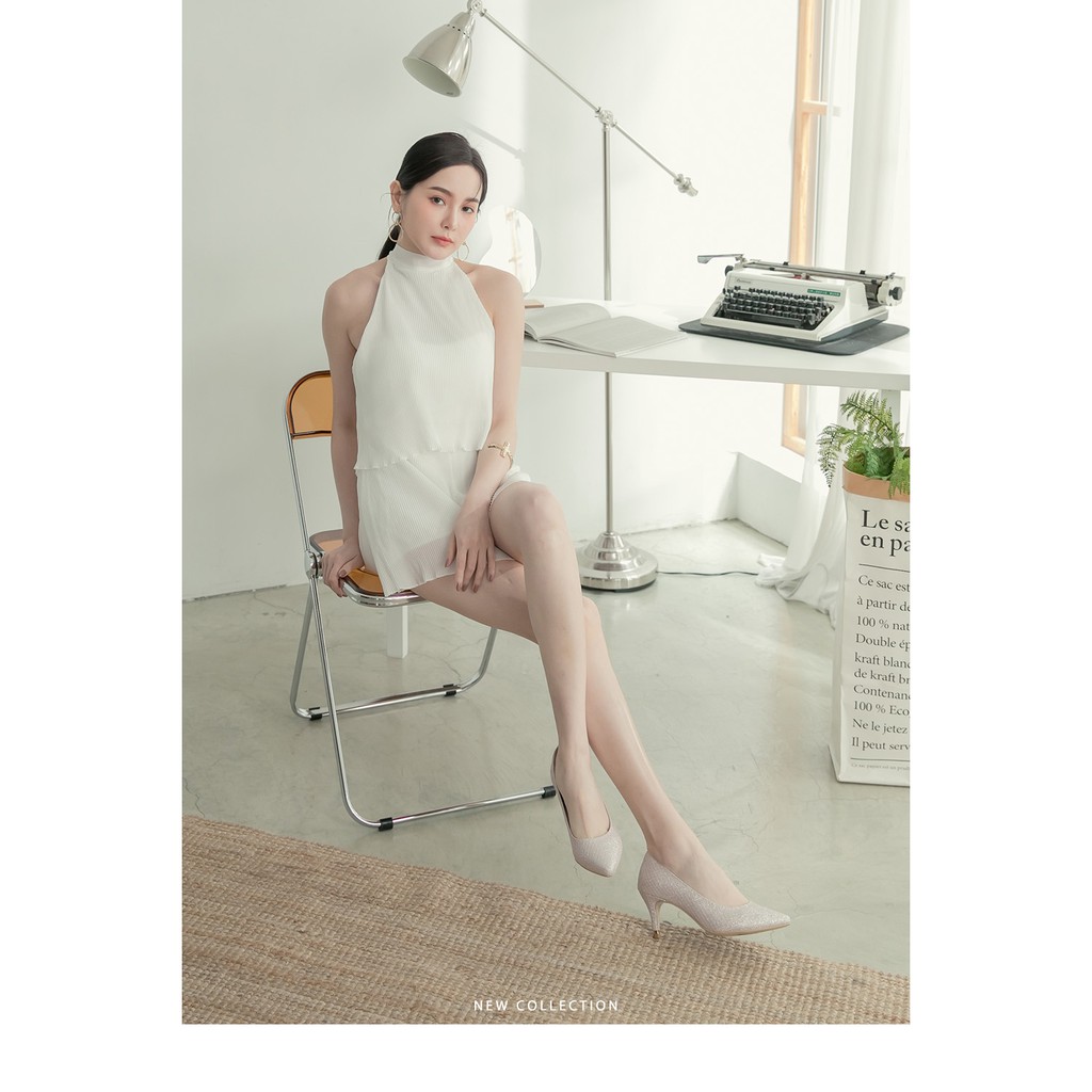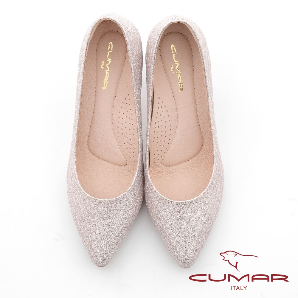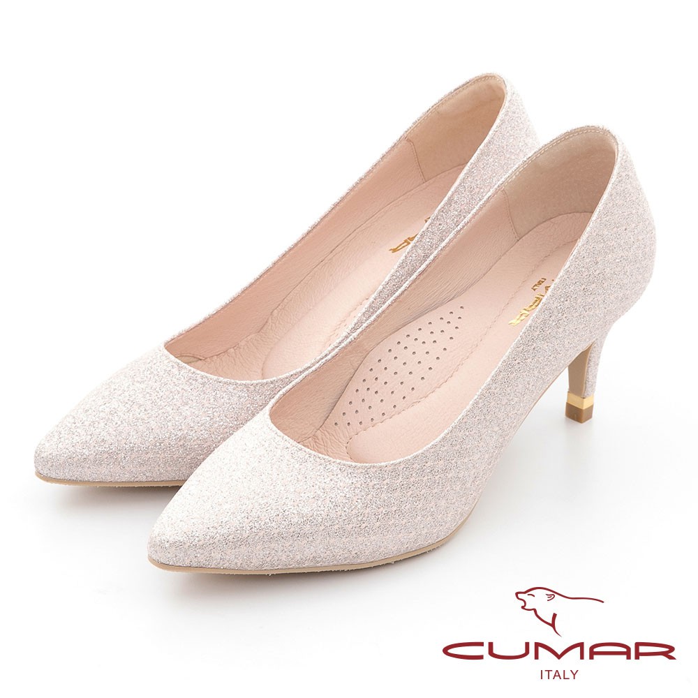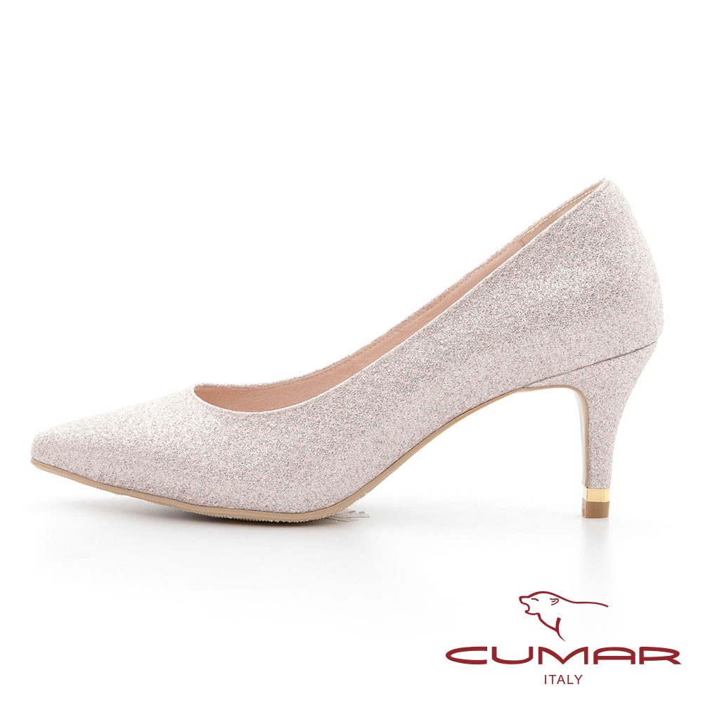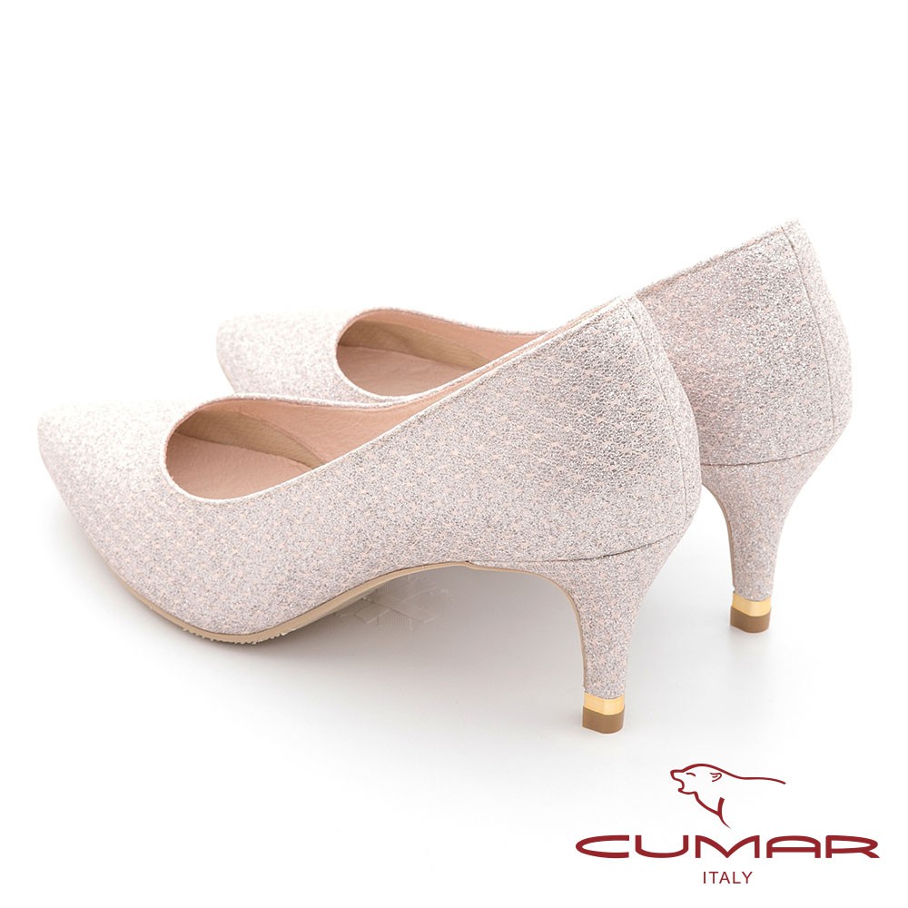 【CUMAR】尖頭閃耀花紋金屬裝飾高跟鞋 - 粉金色721-106