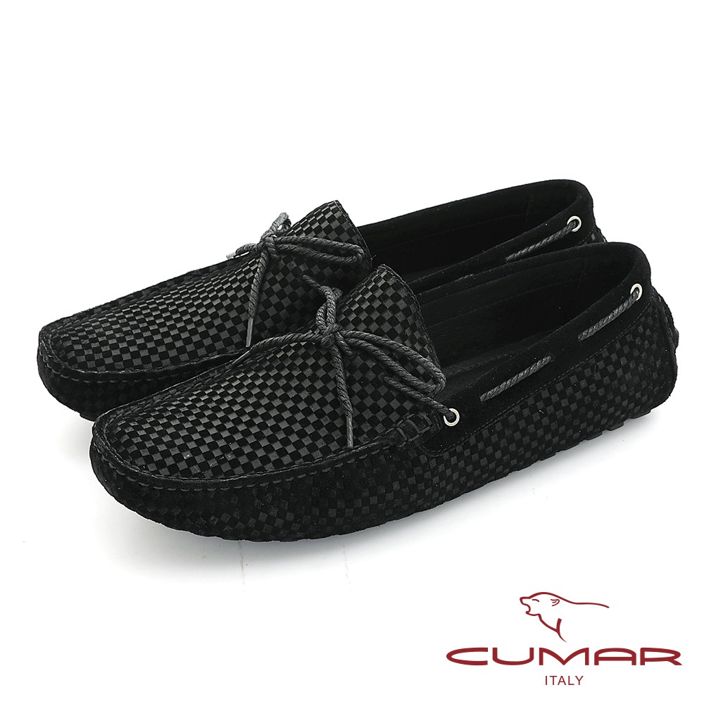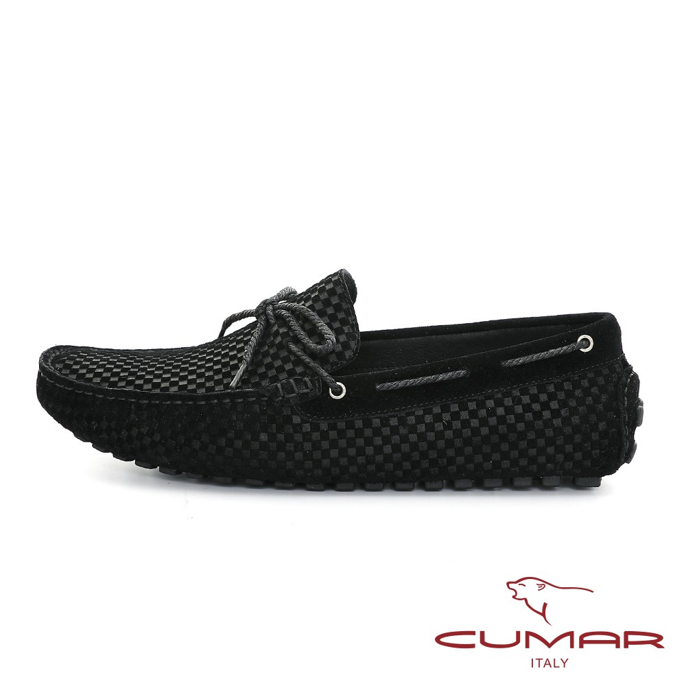 【CUMAR】時尚休閒 牛皮綁帶帆船鞋 - 黑色819-501