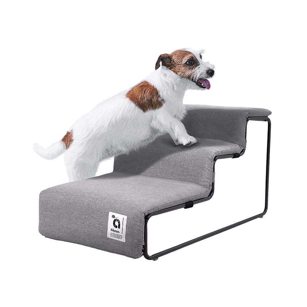 IBIYAYA依比呀呀-馬卡龍可拆洗三階寵物樓梯-霧藍/岩灰(FF2021-L)
