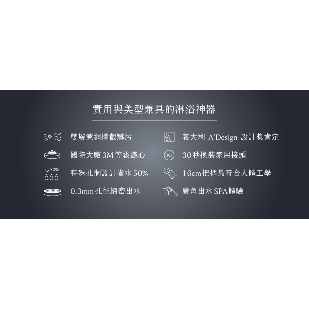 ALYA歐漾 DROP 除氯省水蓮蓬頭冰河銀(含濾芯) 洗澡 淨水器 台灣製造 快速出貨 除氯(HSF-128CP)