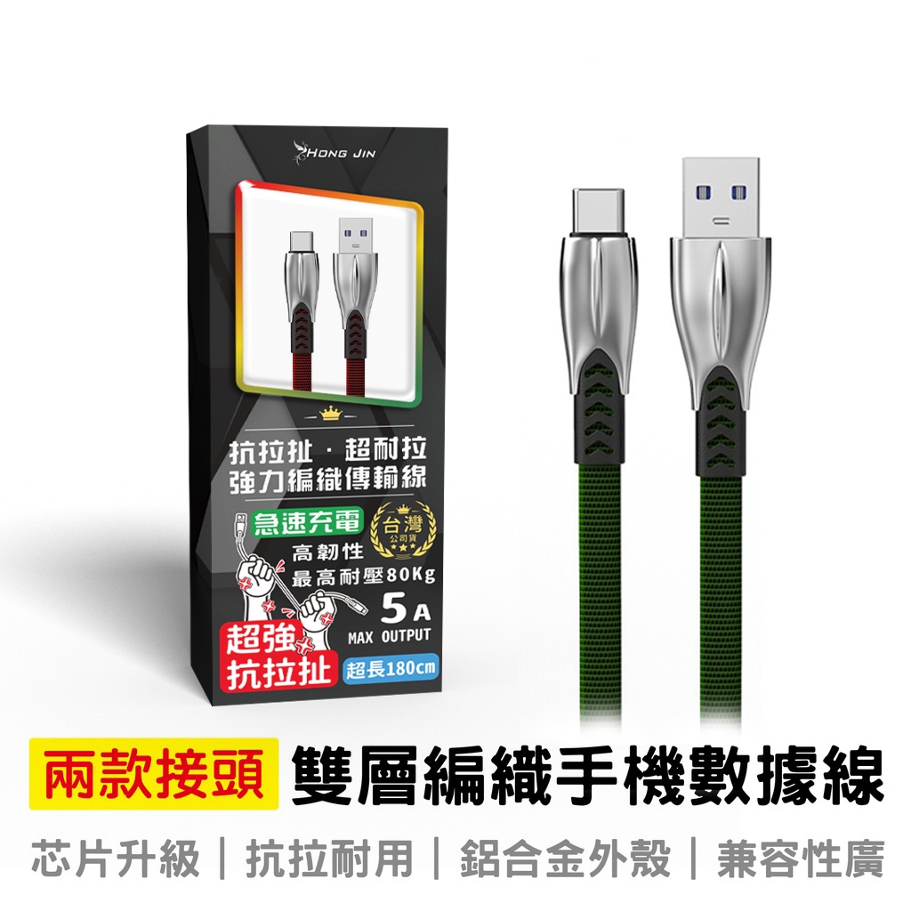 超抗拉扯手機充電線 1.8米超長 3A快充線 雙層編織充電線 傳輸充電二合一
