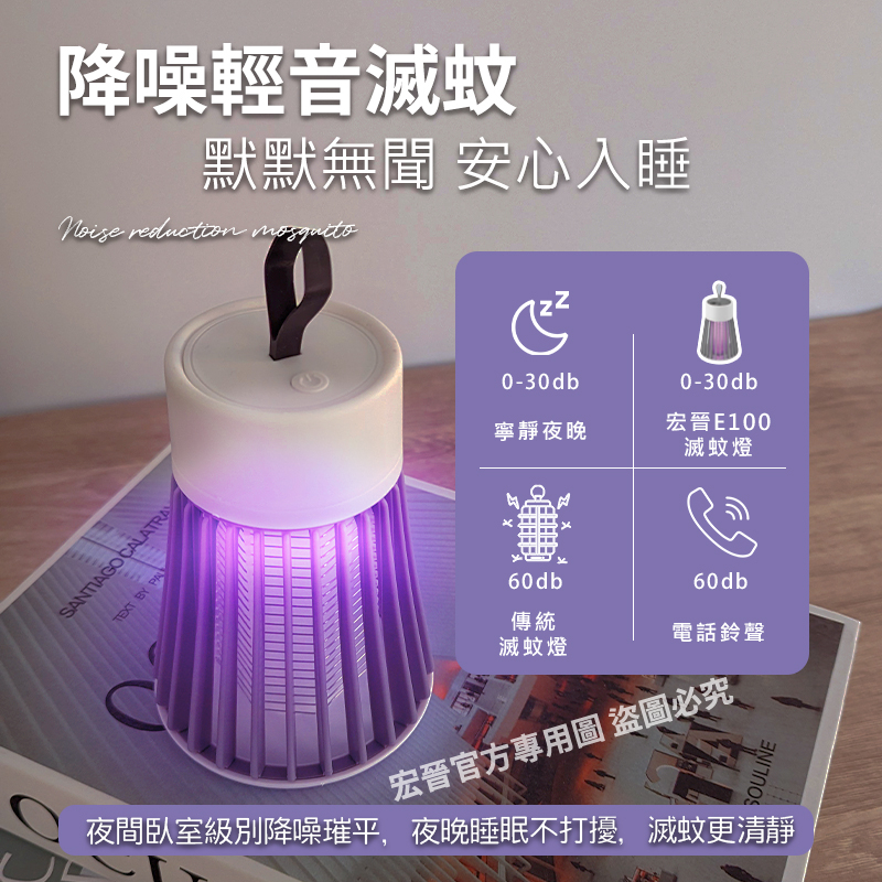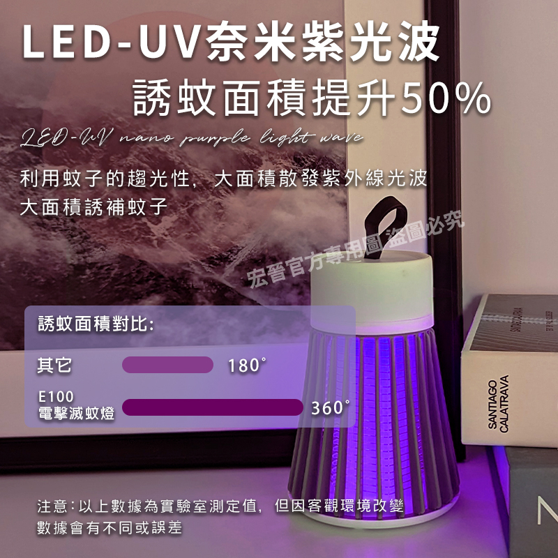宏晉 HongJin E100 電擊式補蚊燈電擊式滅蚊燈 電蚊燈 捕蚊燈 紫光誘蚊除蟲+小夜燈兩用設計 可以攜帶換位置