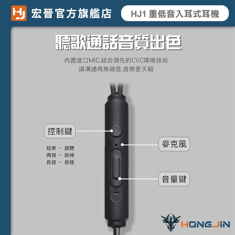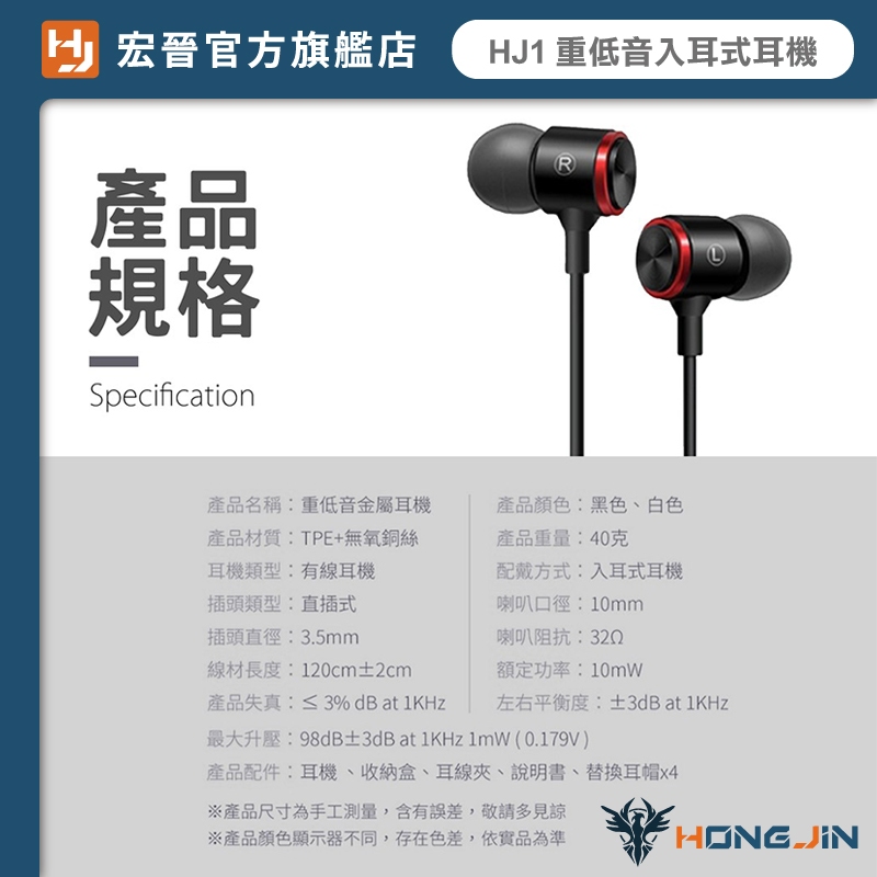 宏晉 HongJin HJ1 重低音強化金屬入耳式耳機 低失真 高音質