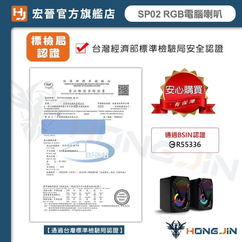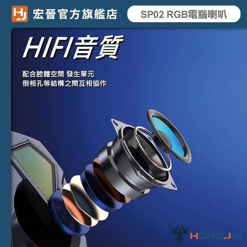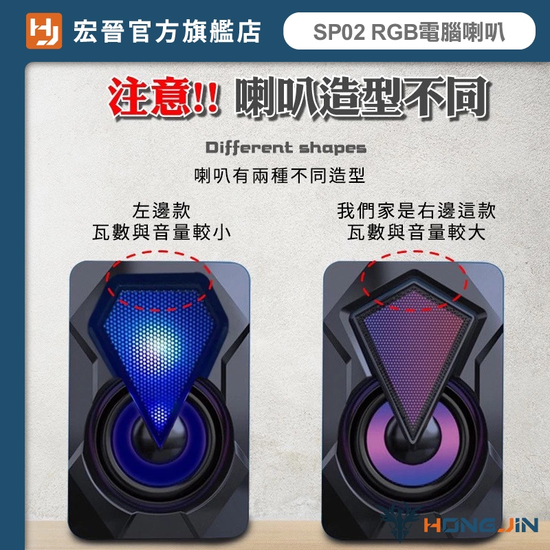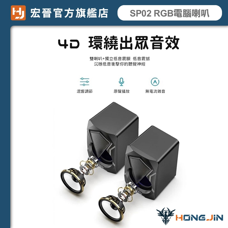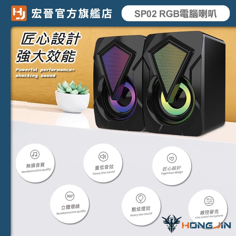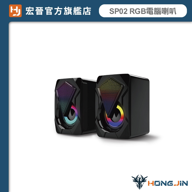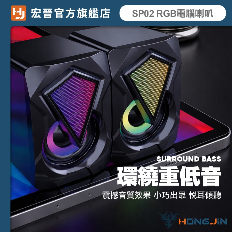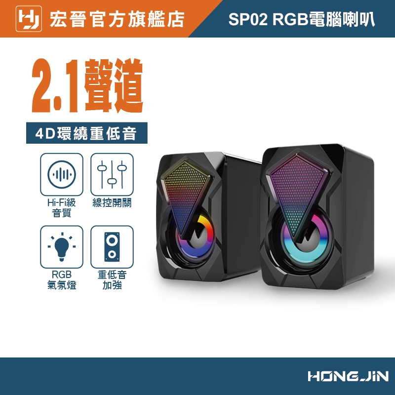 宏晉 Hongjin SP02 RGB電腦喇叭 2.1聲道 二件式 音響 多媒體 環繞重低音 立體聲 揚聲器 氣氛燈效