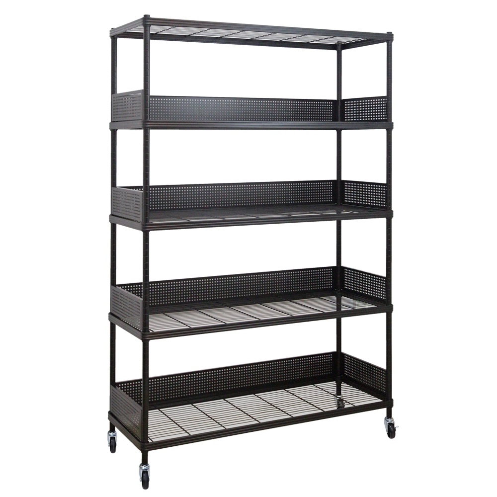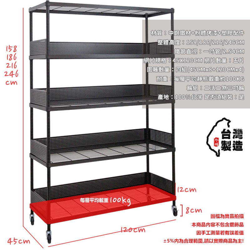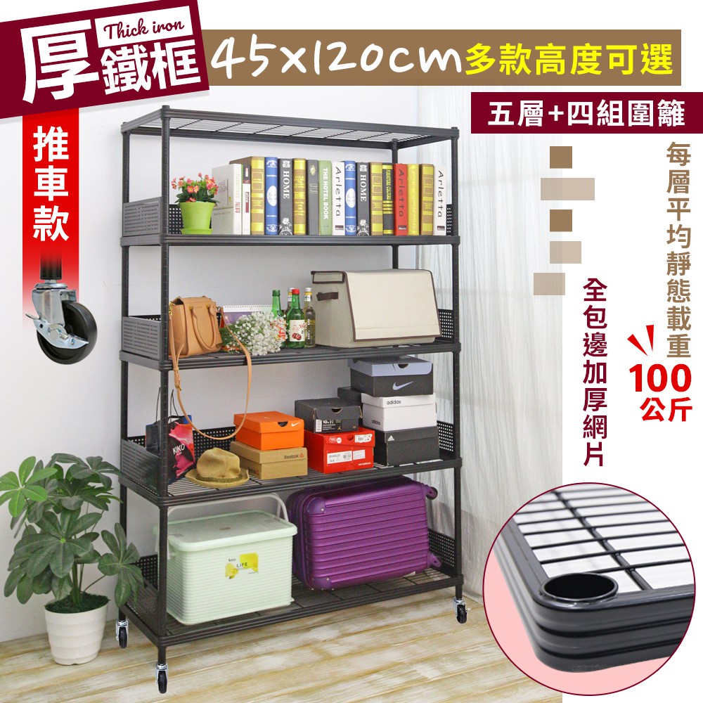 【居家cheaper】45X120CM厚鐵框圍籬款五層收納推車/四款高度可選/波浪架/層架/置物架/儲藏架/貨架