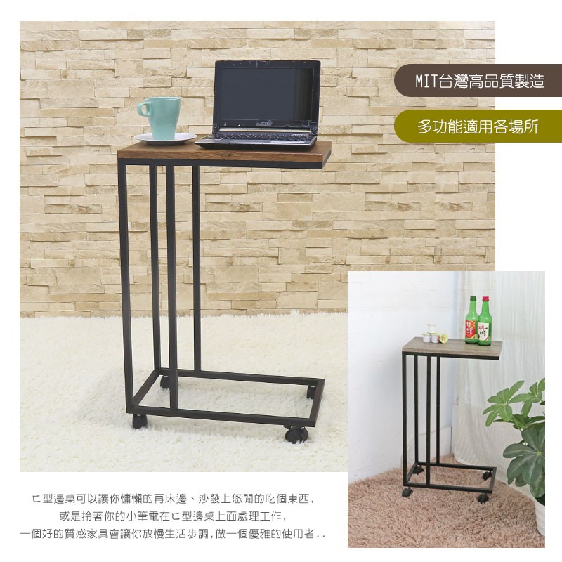 【居家cheaper】ㄈ型工業風移動邊桌(大理石紋/仿古紋/漂流木紋/床邊桌/筆記型電腦桌/懶人桌/邊桌/茶几)