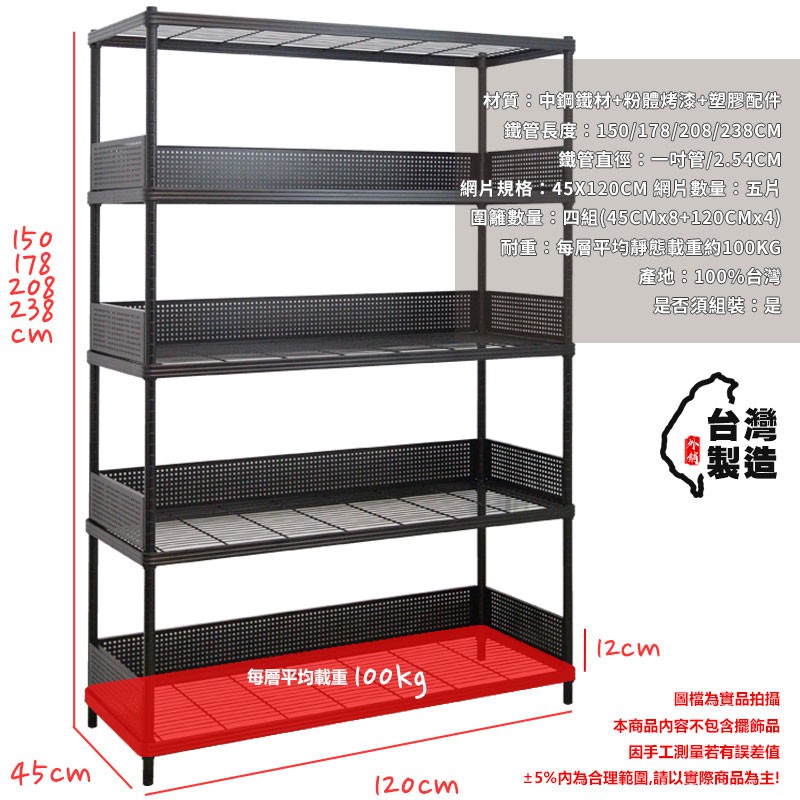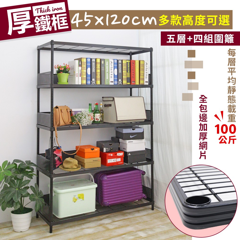 【居家cheaper】45X120CM厚鐵框圍籬款五層收納鐵架/四款高度可選/波浪架/層架/置物架/儲藏架/貨架
