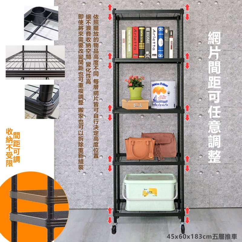 【居家cheaper】厚鐵框五層收納鐵架/推車/45X60/45X90/45X120CM鐵架/波浪架/層架/置物架/貨架