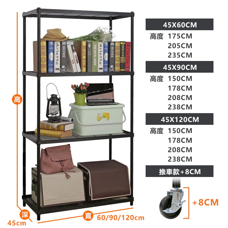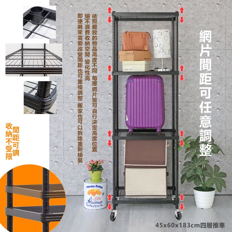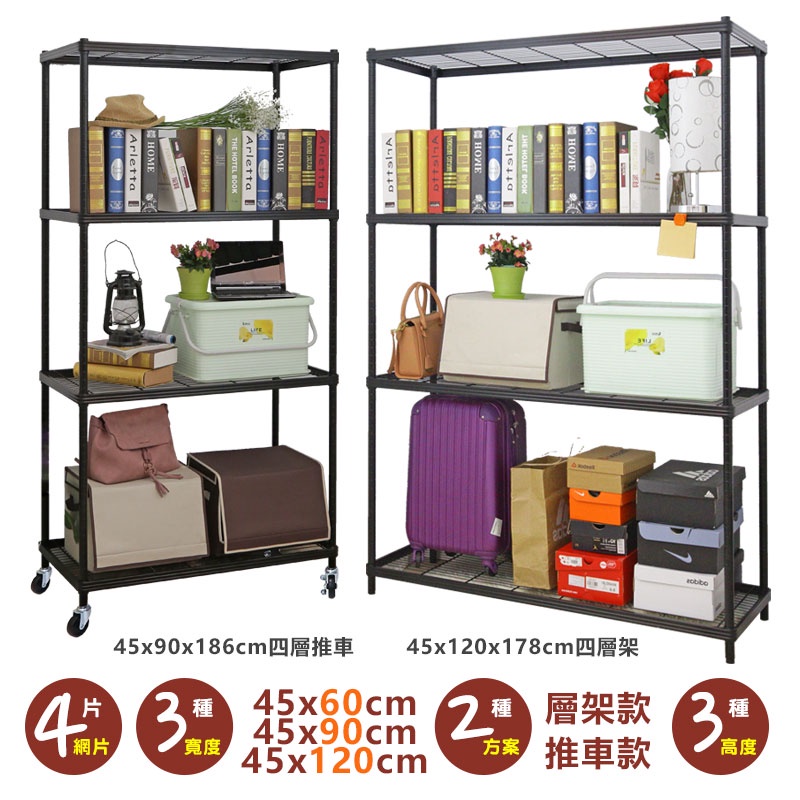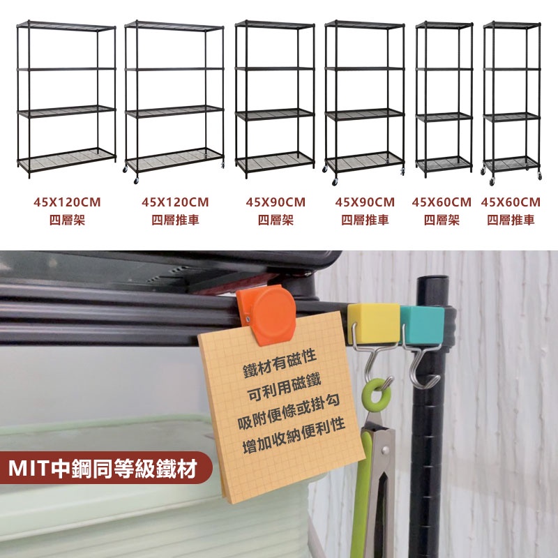 【居家cheaper】厚鐵框四層收納鐵架/推車/45X60/45X90/45X120CM鐵架/波浪架/層架/置物架/貨架