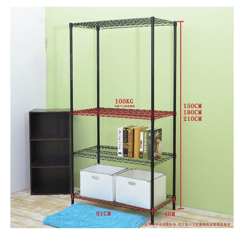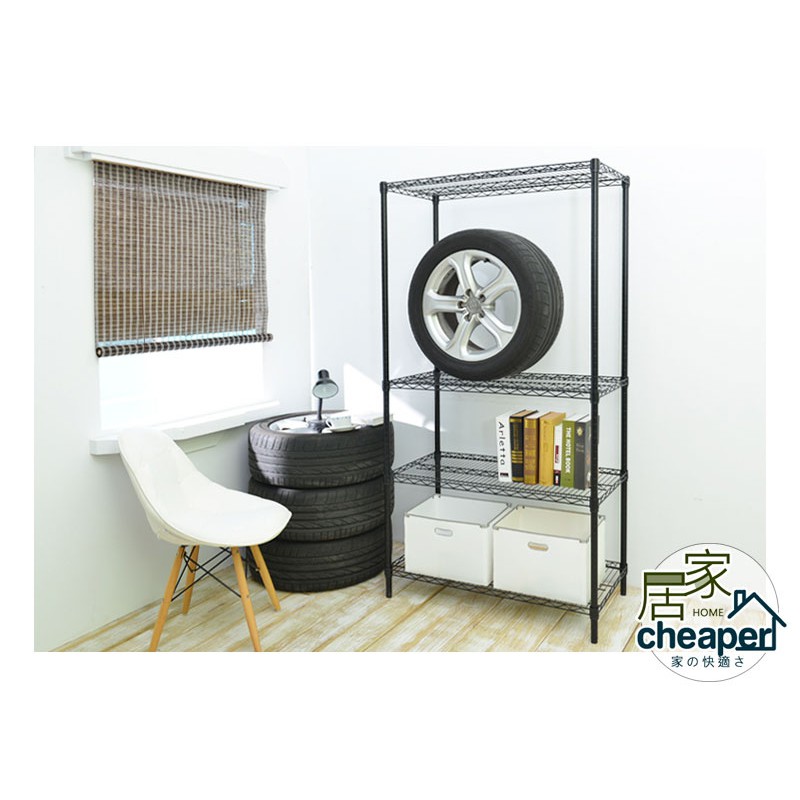 【居家cheaper】荷重型46X91CM四層置物架 烤漆黑(3款可選)(層架鐵架/波浪架/收納架/鐵力士架)