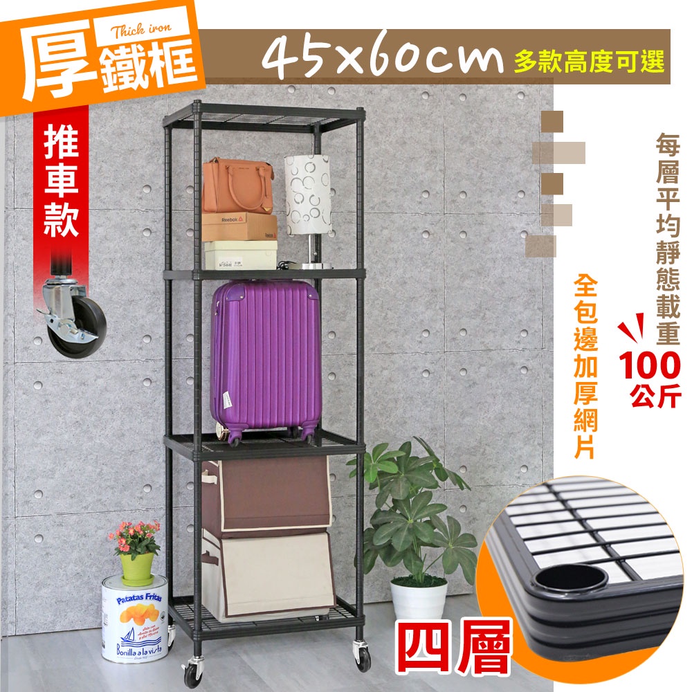 【居家cheaper】厚鐵框四層收納鐵架/推車 45X60CM 兩款高度可選 鐵架/波浪架/層架/置物架/儲藏架/貨架
