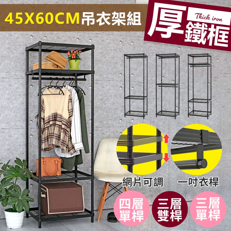 【居家cheaper】45X60CM厚鐵框吊衣架組全系列 烤黑鎖管(無布套) 多款可選 衣櫥組 收納架 鐵架 衣架組
