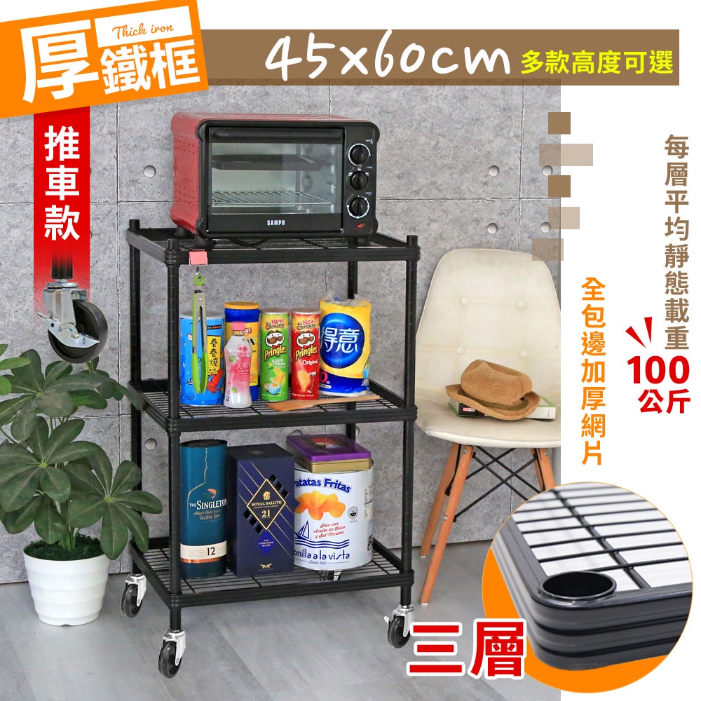 【居家cheaper】厚鐵框三層收納鐵架/推車 45X60CM 五款高度可選 鐵架/波浪架/層架/置物架/儲藏架/貨架