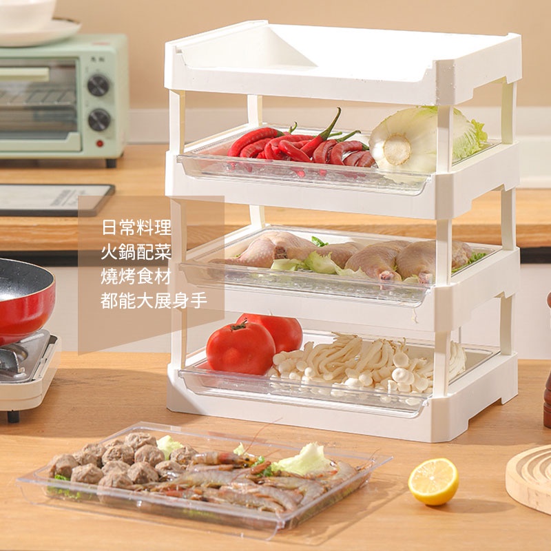 【居家cheaper】大款廚房堆疊瀝水架 杯架 配菜盤 備菜盤 菜盤 火鍋料盤 燒烤料盤 材料盤 蔬菜盤 食材盤