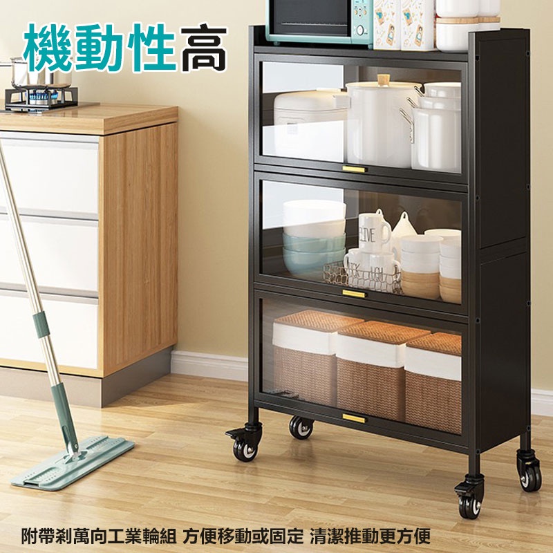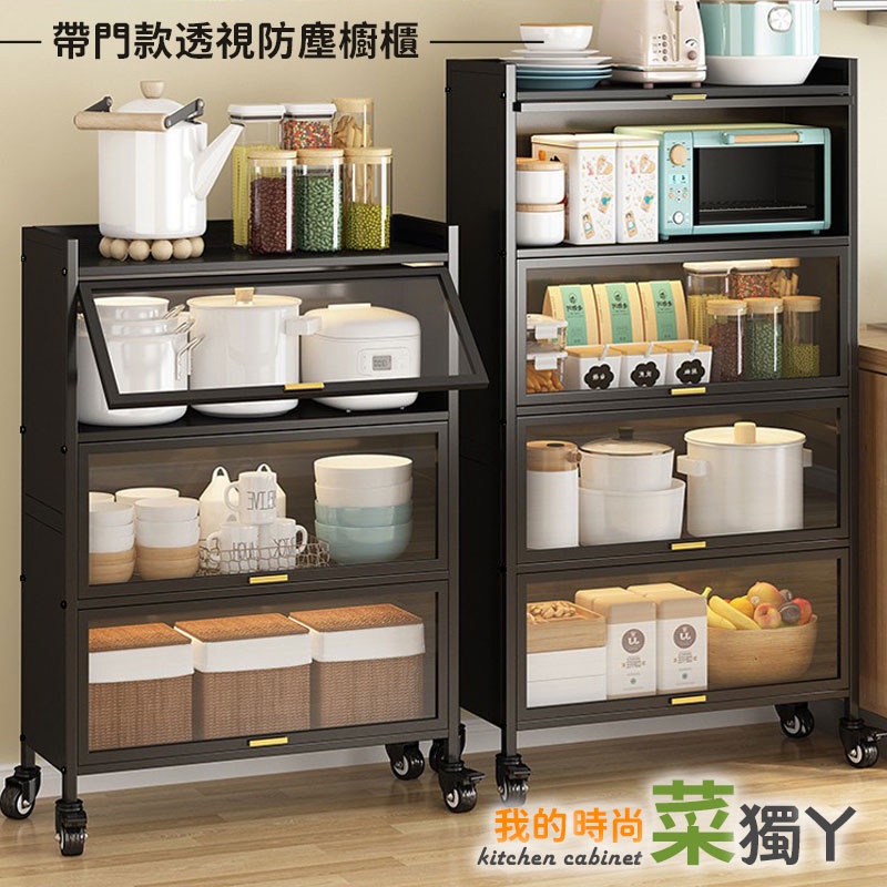 【居家cheaper】豪華版帶門款廚房收納櫃 掀蓋櫥櫃 透明櫥櫃 廚房收納架 置物架 廚房櫥櫃 我的時尚菜獨ㄚ