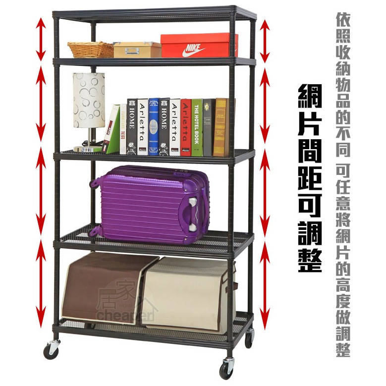 【居家cheaper】耐重45X90CM五層菱形網推車(倉儲架/鞋架/貨架/展示架/鐵架/行李箱架/收納架)