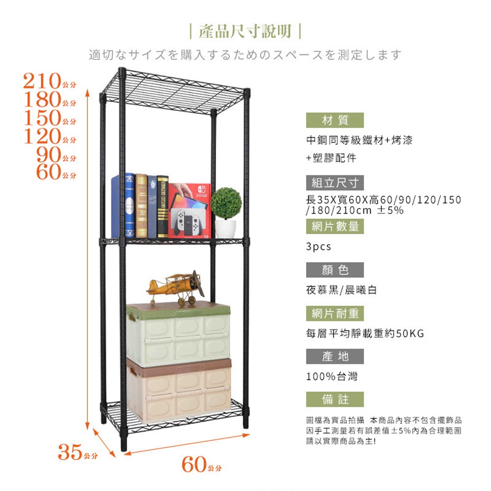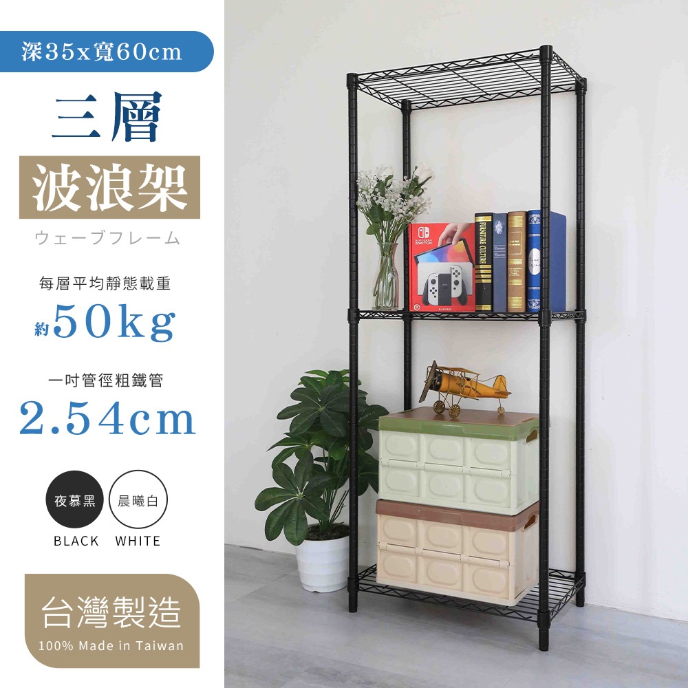 【居家cheaper】(夜慕黑/晨曦白)35X60三層置物鐵架(烤漆鐵力士架/鍍鉻架/收納架/置物架/貨架/廚房架)