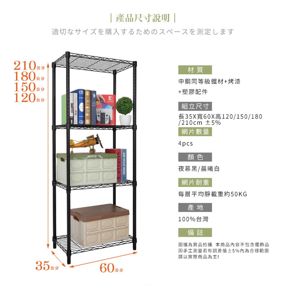 【居家cheaper】(夜慕黑/晨曦白)35X60四層置物鐵架(烤漆鐵力士架/鍍鉻架/收納架/置物架/貨架/廚房架)