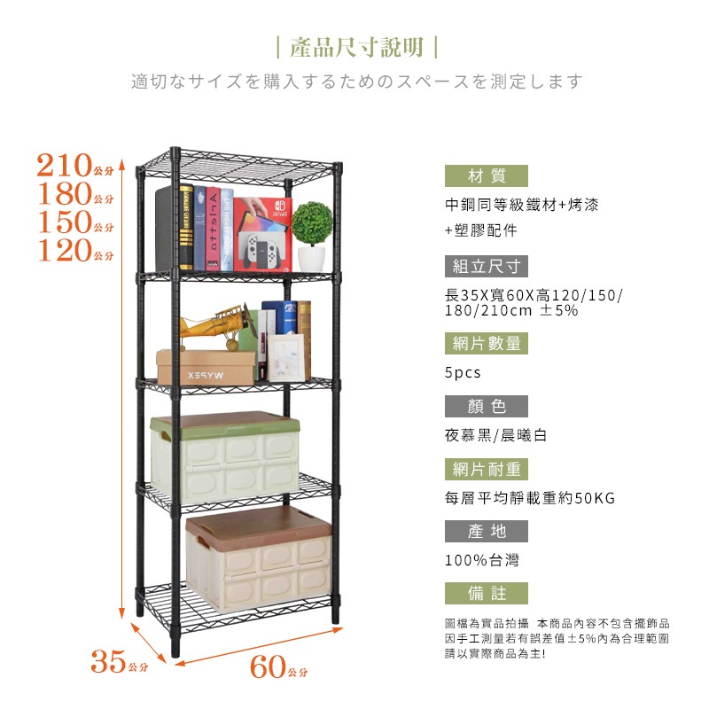 【居家cheaper】(夜慕黑/晨曦白)35X60五層置物鐵架(烤漆鐵力士架/鍍鉻架/收納架/置物架/貨架/廚房架)