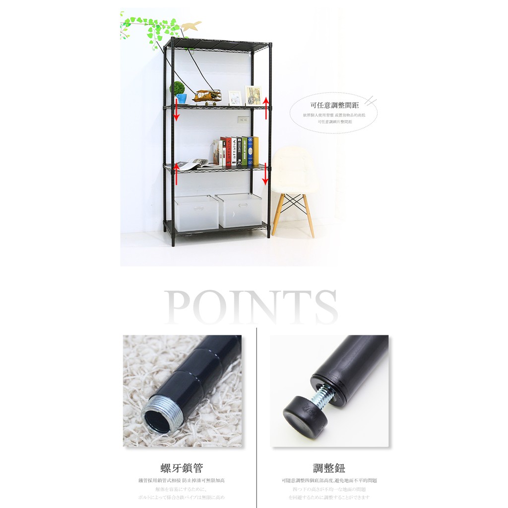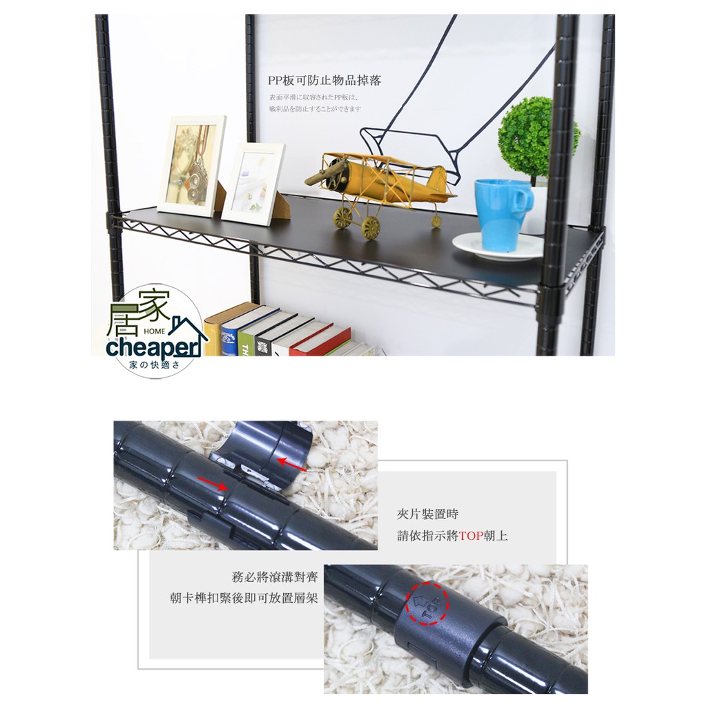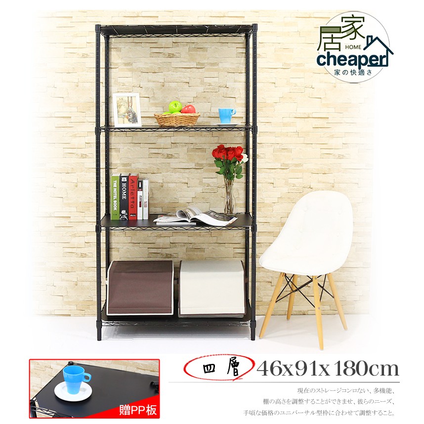 【居家cheaper】黑46X91X180CM四層+黑PP板X4(全省免運/鞋架/行李箱架/衛生紙架/後背包架/鞋櫃)