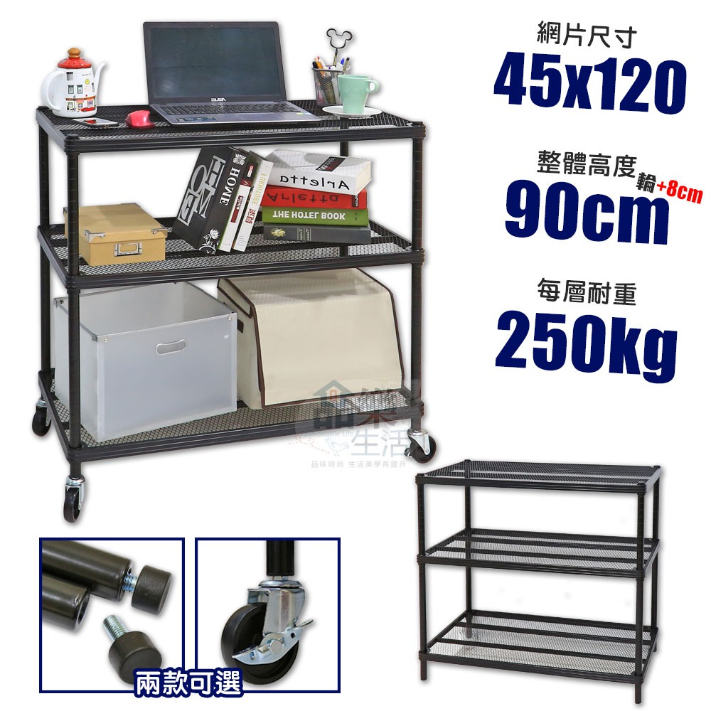 【居家cheaper】耐重菱形網45X120CM三層置物架&推車/倉儲架/鞋架/展示架/鐵架/行李箱架/收納架