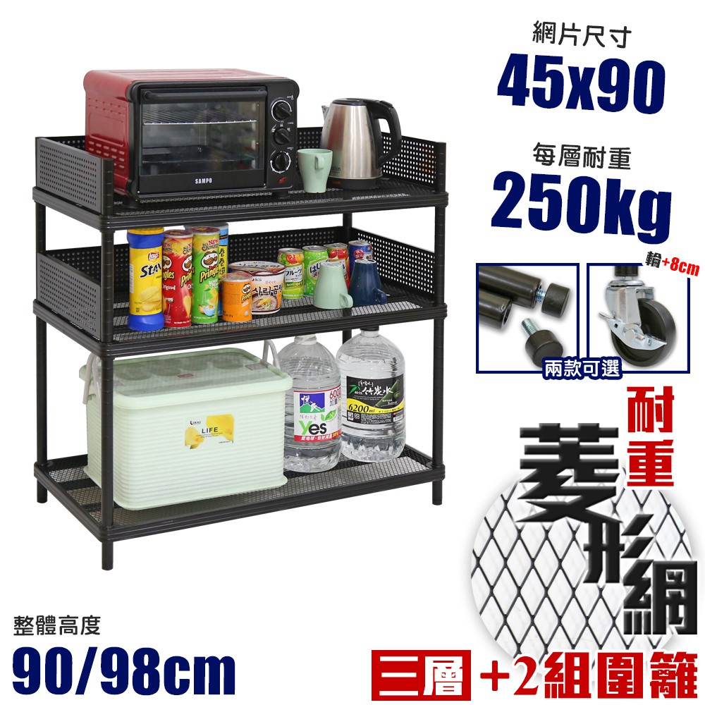 【居家cheaper】耐重菱形網三層架/推車+2組圍籬 45X90X90/98CM/層架鐵架/菱型網/全省免運