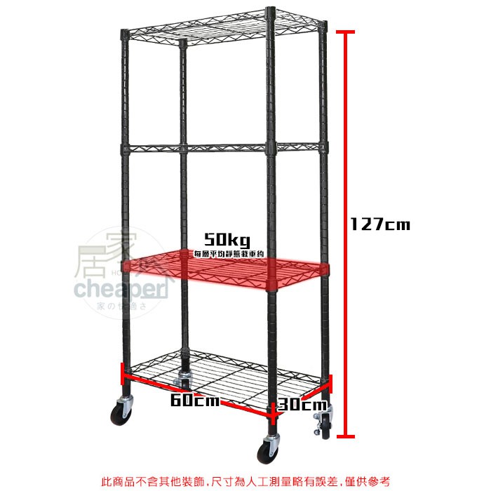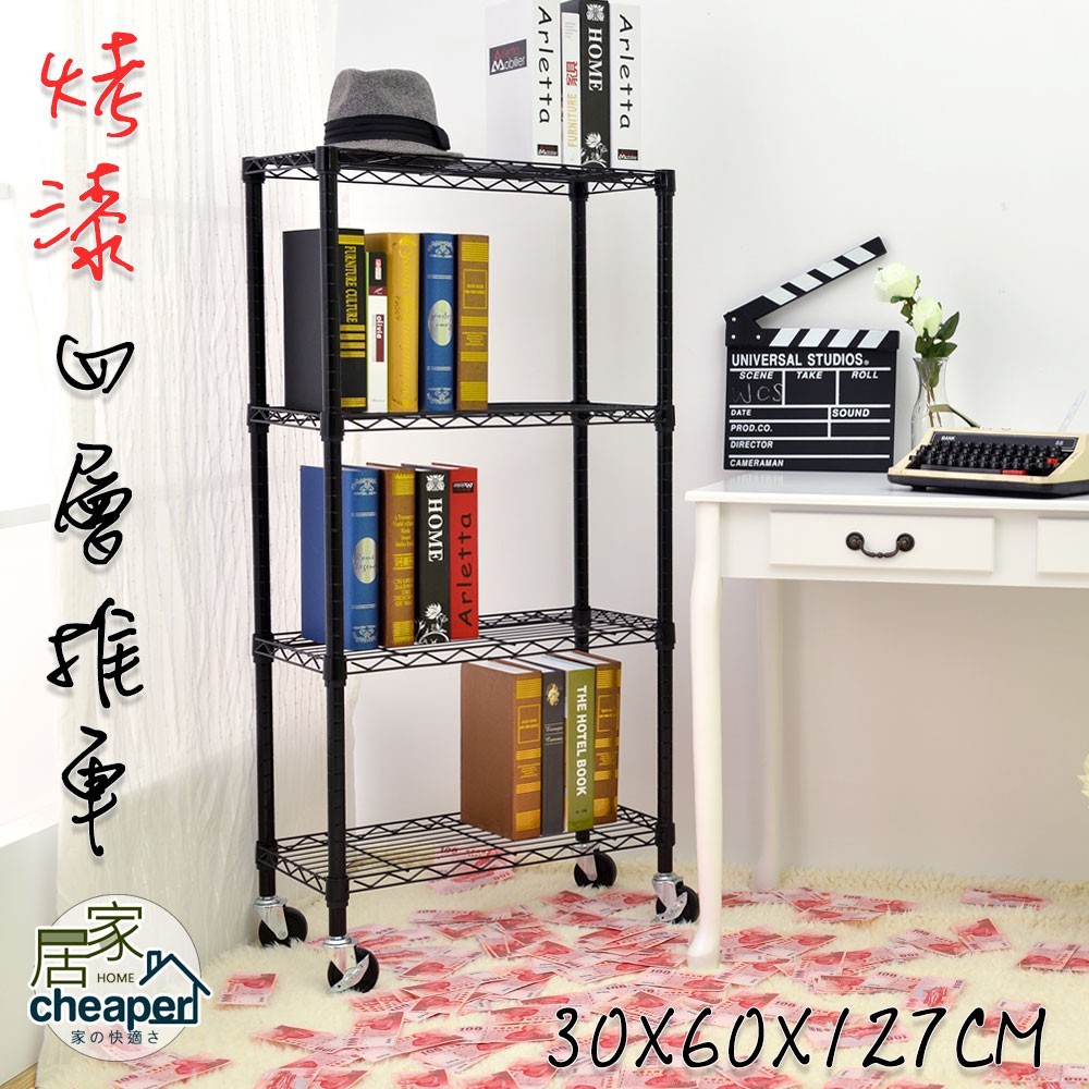 【居家cheaper】 時尚黑60X30X127CM四層置物推車(鐵架/鐵力士架/烤漆/推車)