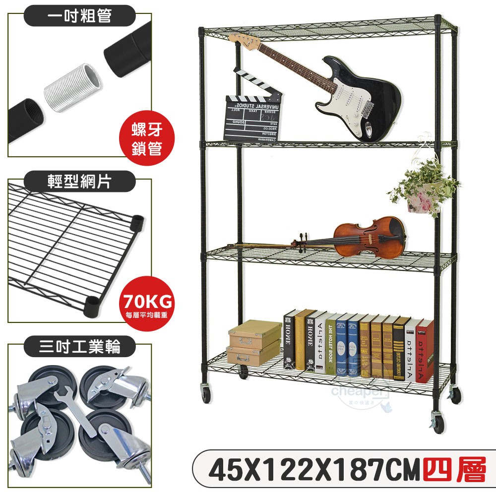 【居家cheaper】 (時尚黑/全電鍍)45X120X187CM四層推車(現貨/置物架/推車)