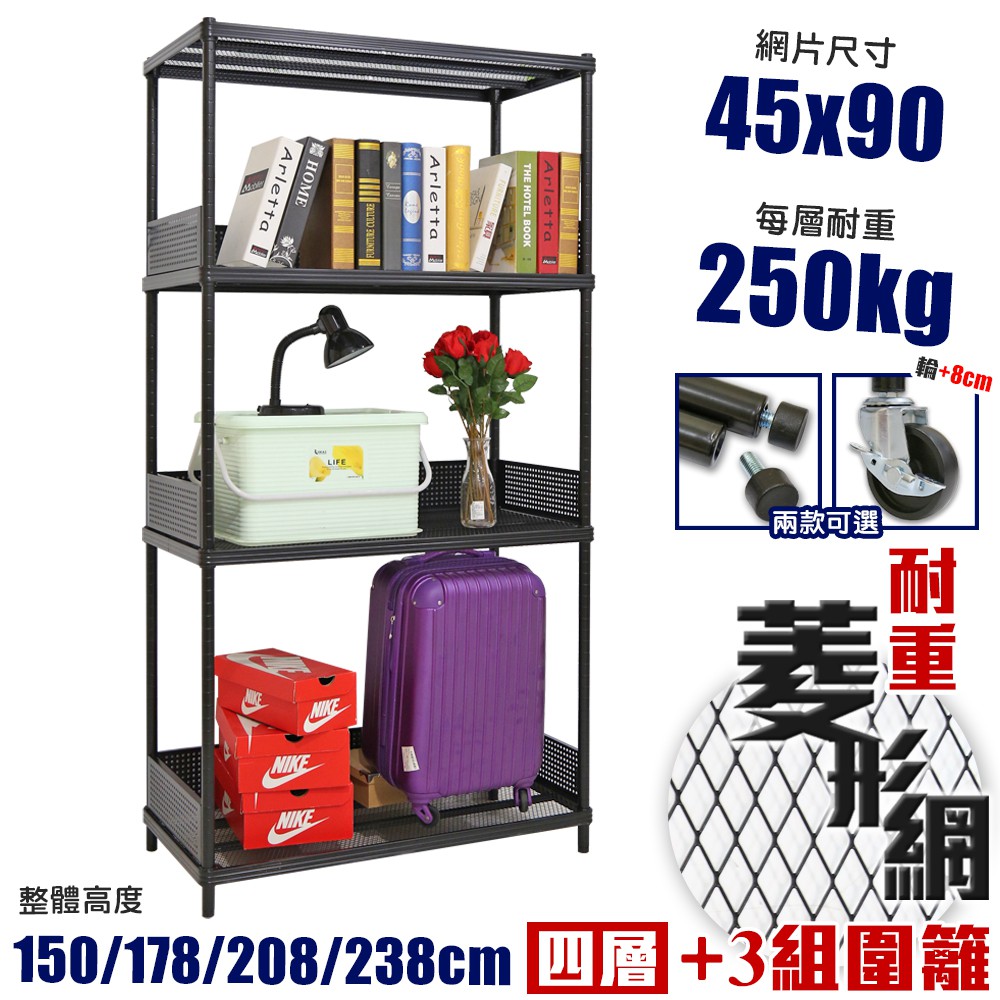【居家cheaper】耐重菱形網四層架/推車+3組圍籬 45X90X150/178/208/238CM/層架鐵架/免運