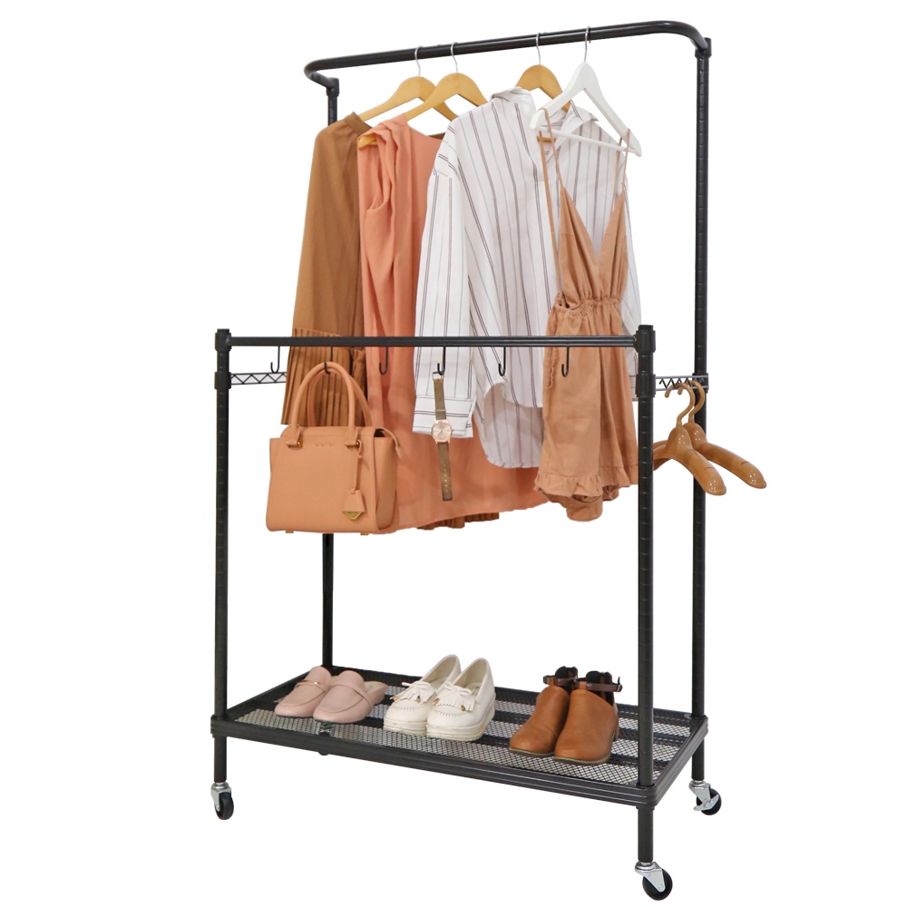 【居家cheaper】45X90X156CM 菱型網移動式雙桿衣架組/推車/吊衣架組/衣櫥/收納架/鐵架/露營