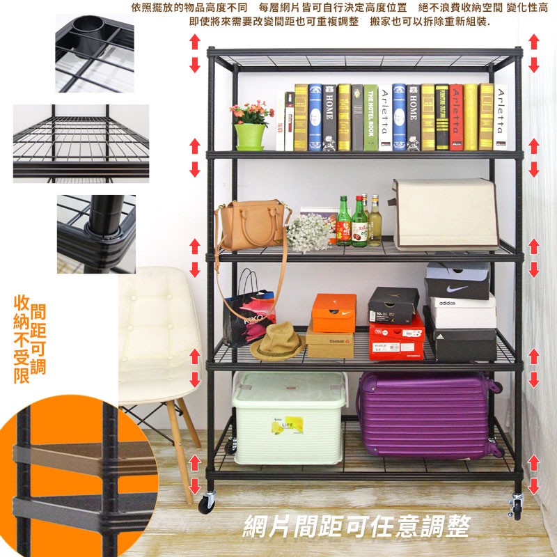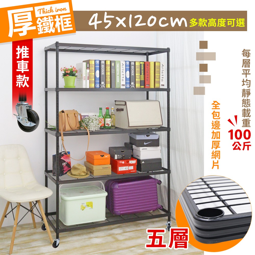 【居家cheaper】厚鐵框五層收納推車45X120CM 四款高度可選 鐵架/波浪架/層架/置物架/儲藏架/貨架/耐重鐵