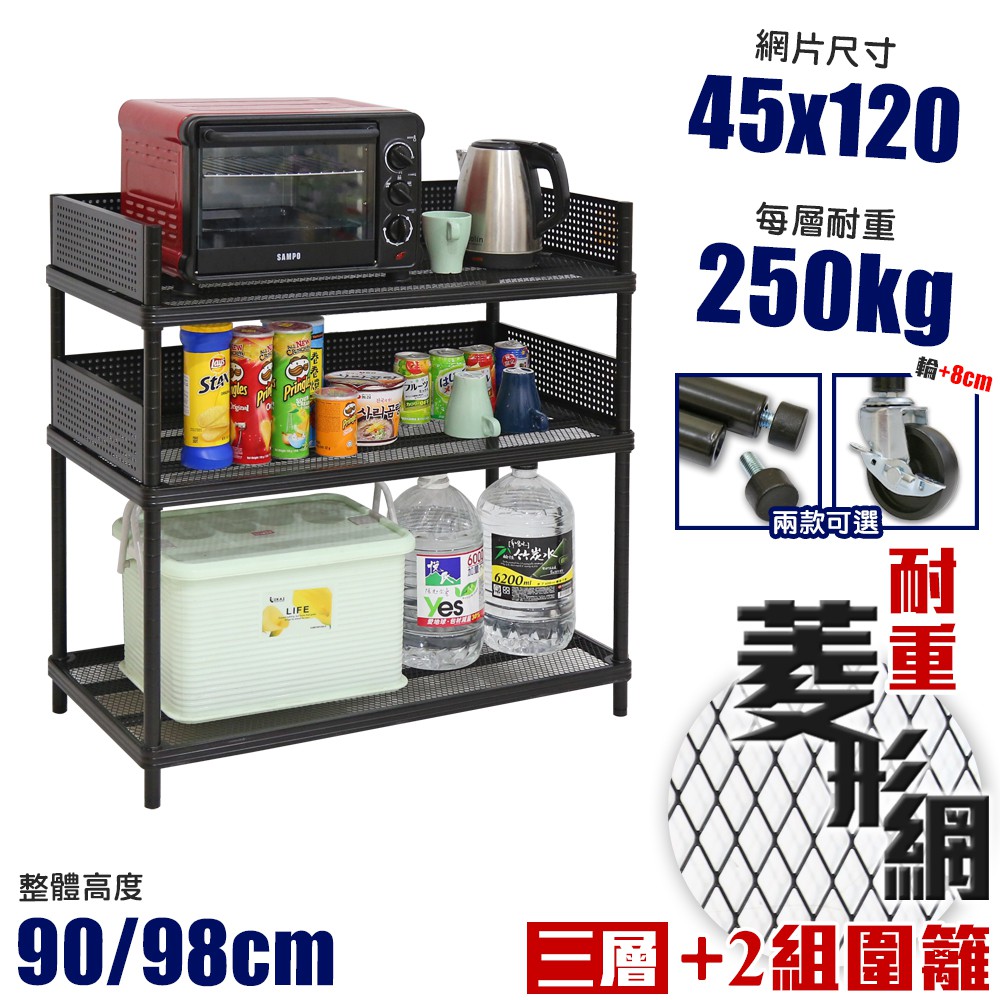 【居家cheaper】耐重菱形網三層架/推車+2組圍籬 45X120X90/98CM/層架鐵架/菱型網/全省免運