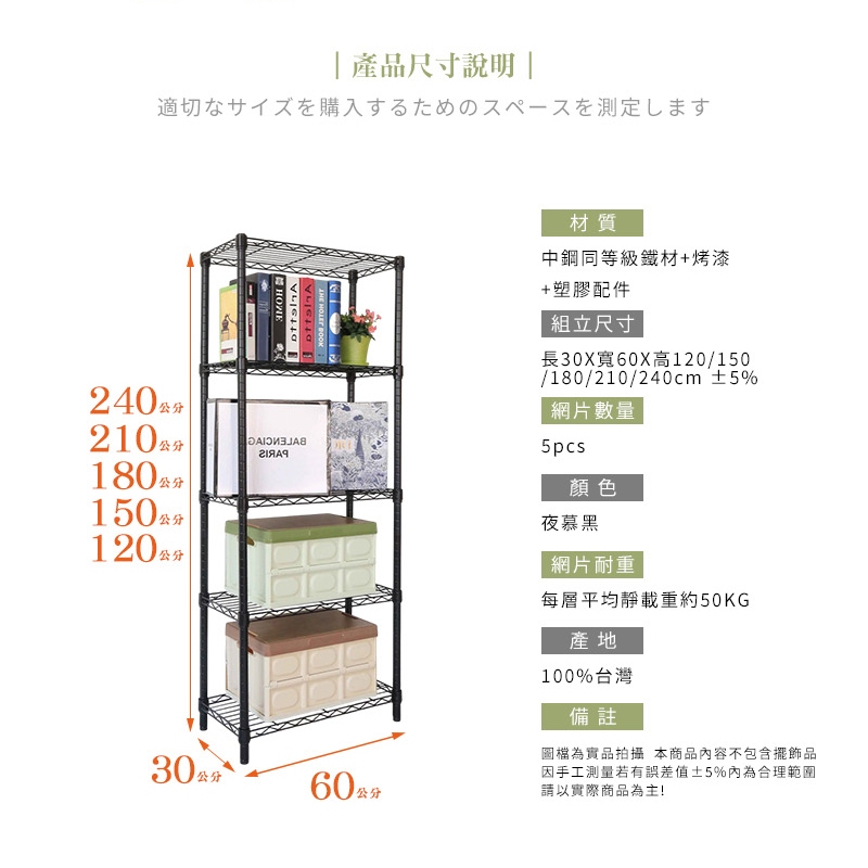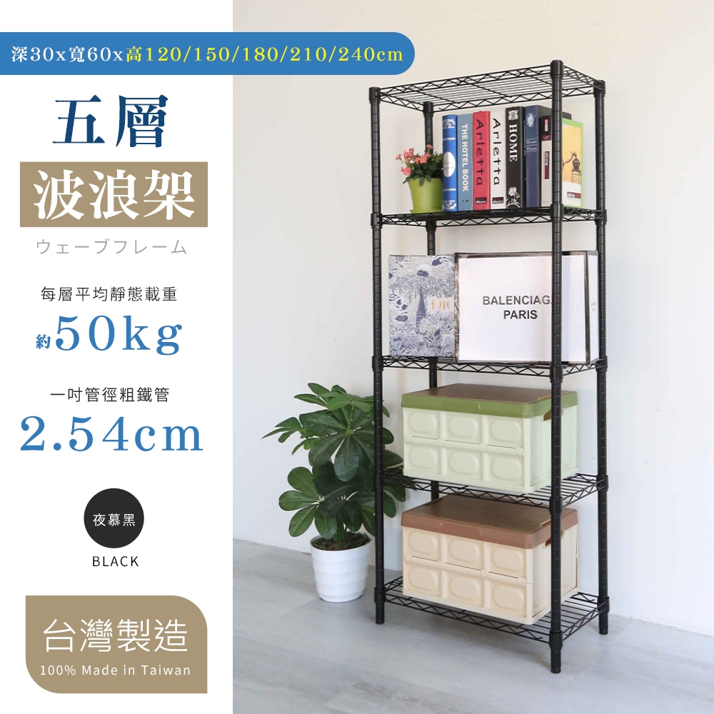 【居家cheaper】夜慕黑30X60CM五層置物架(全省免運/鞋架/收納箱/收納櫃/玄關收納架/波浪架)