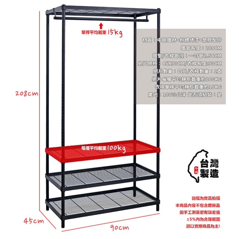 【居家cheaper】45X90X208CM厚鐵框四層單桿吊衣架組 烤黑鎖管(無布套) 多款可選 衣櫥組 收納架 鐵架