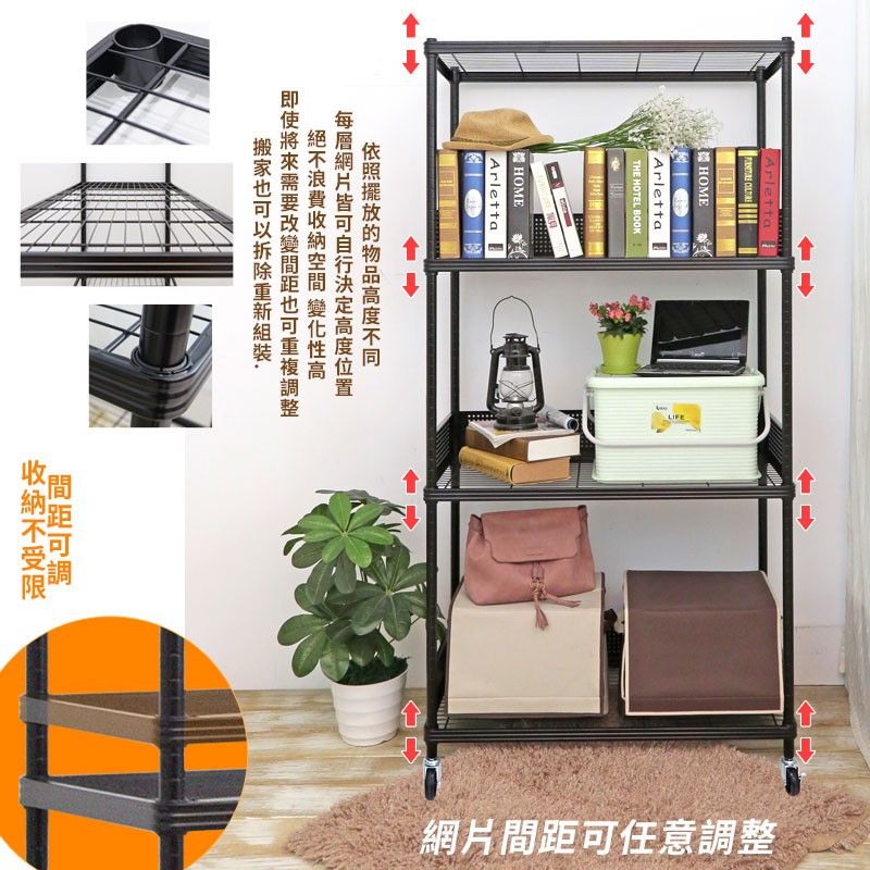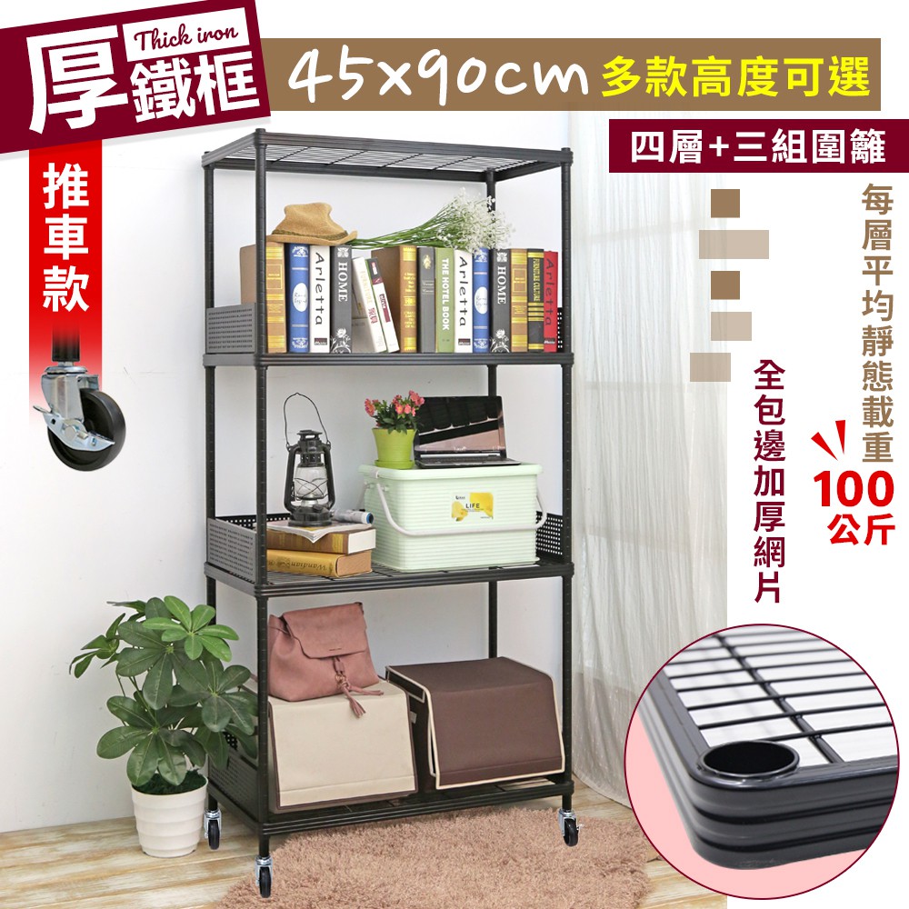 【居家cheaper】45X90CM厚鐵框圍籬款四層收納推車/四款高度可選/波浪架/層架/置物架/儲藏架/貨架