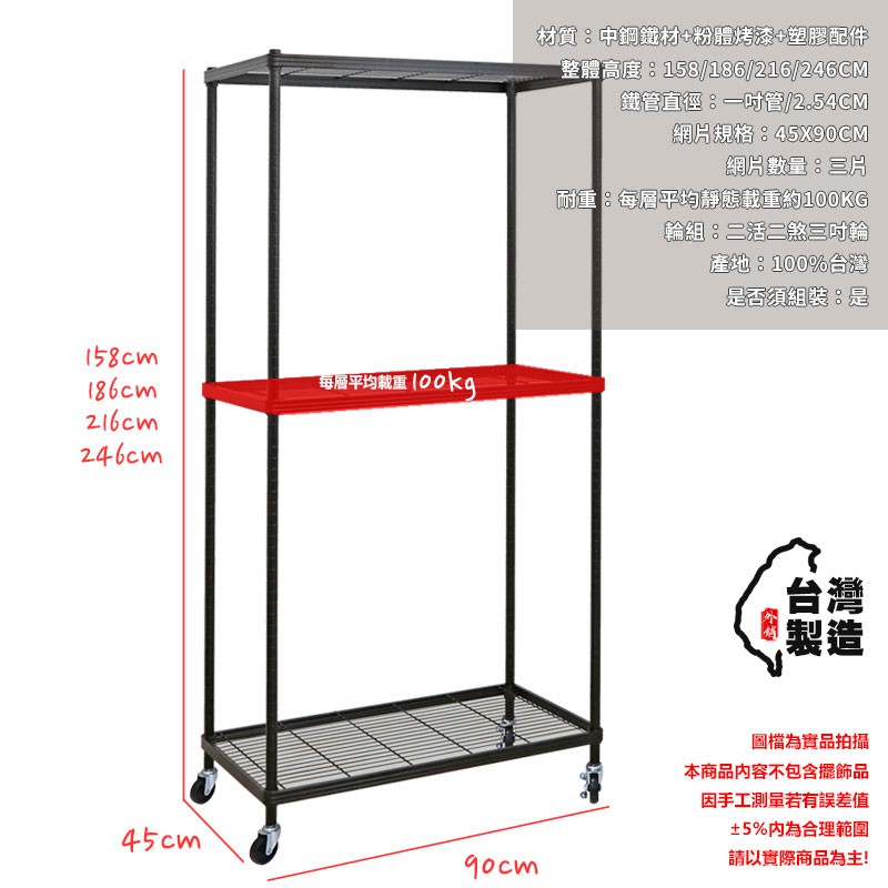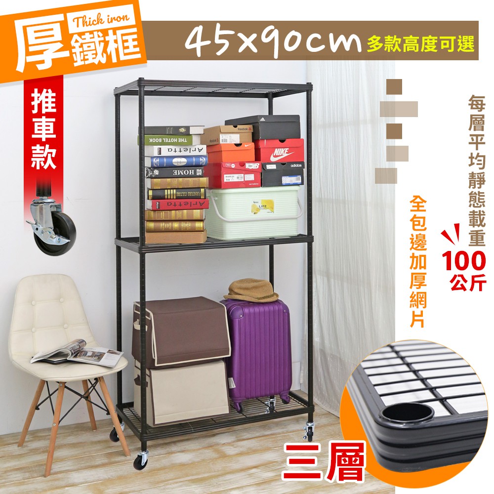 【居家cheaper】厚鐵框三層收納推車45X90CM 四款高度可選 鐵架/波浪架/層架/置物架/儲藏架/貨架/耐重鐵架