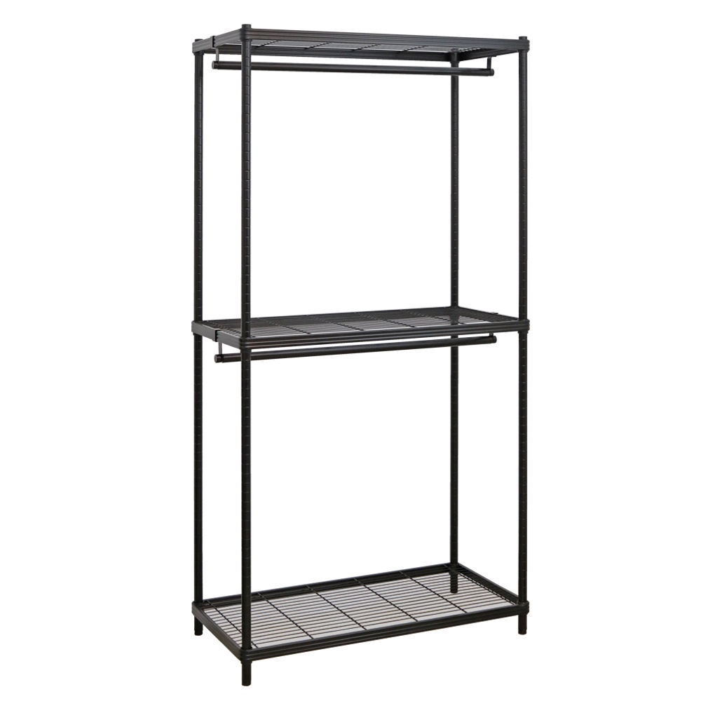 【居家cheaper】45X90X208CM厚鐵框三層雙桿吊衣架組 烤黑鎖管(無布套) 多款可選 衣櫥組 收納架 鐵架