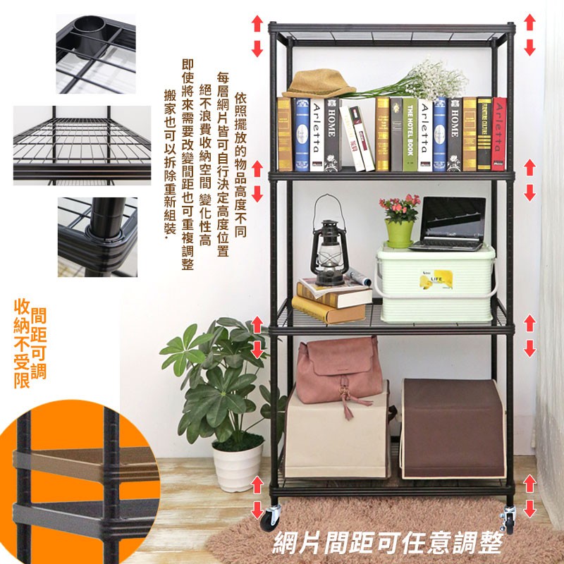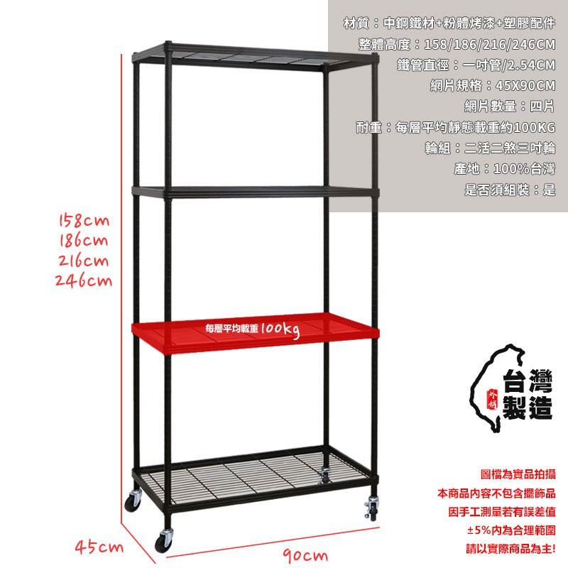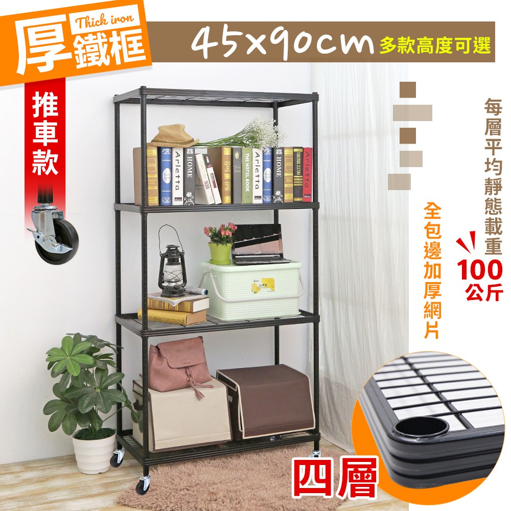 【居家cheaper】厚鐵框四層收納推車45X90CM 四款高度可選 鐵架/波浪架/層架/置物架/儲藏架/貨架/耐重鐵架