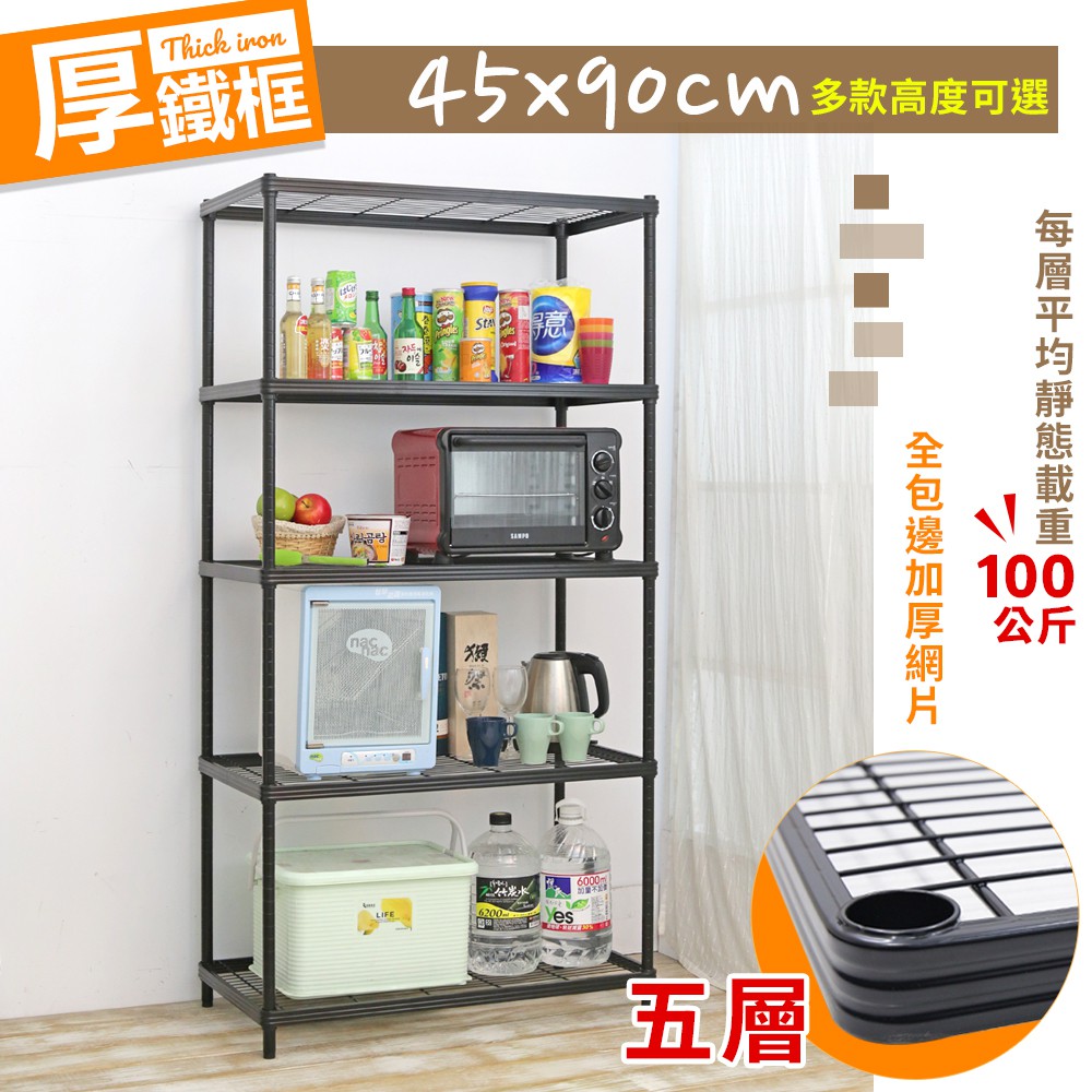 【居家cheaper】厚鐵框五層收納鐵架45X90CM 四款高度可選 鐵架/波浪架/層架/置物架/儲藏架/貨架/耐重鐵架