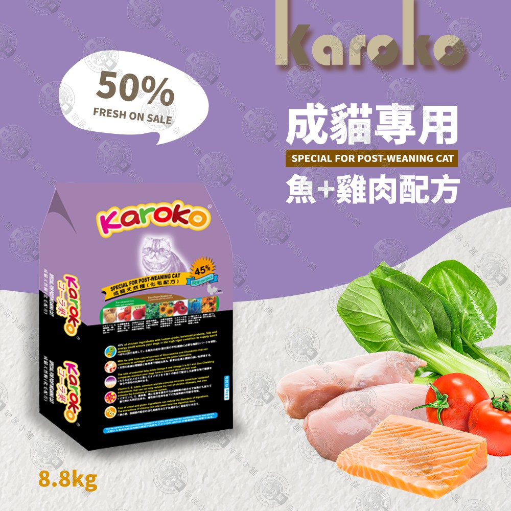 KAROKO 渴樂果 雞肉+鮭魚 成貓化毛配方飼料 1.2kg/7.7kg 室內貓 運動量大 成貓