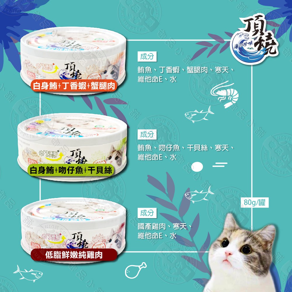 頂燒 寒天無穀機能貓罐 白肉罐 80g x24罐組 主食罐 嚴選國產 添加寒天 牛磺酸 無穀低敏 貓罐