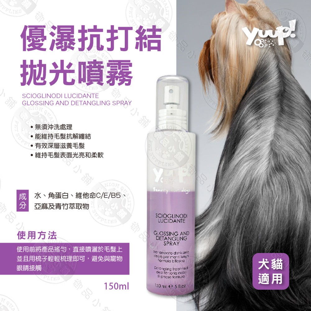 義大利 YUUP 優瀑 抗打結拋光噴霧 150ml 犬貓適用 免沖洗 深層滋養 柔順