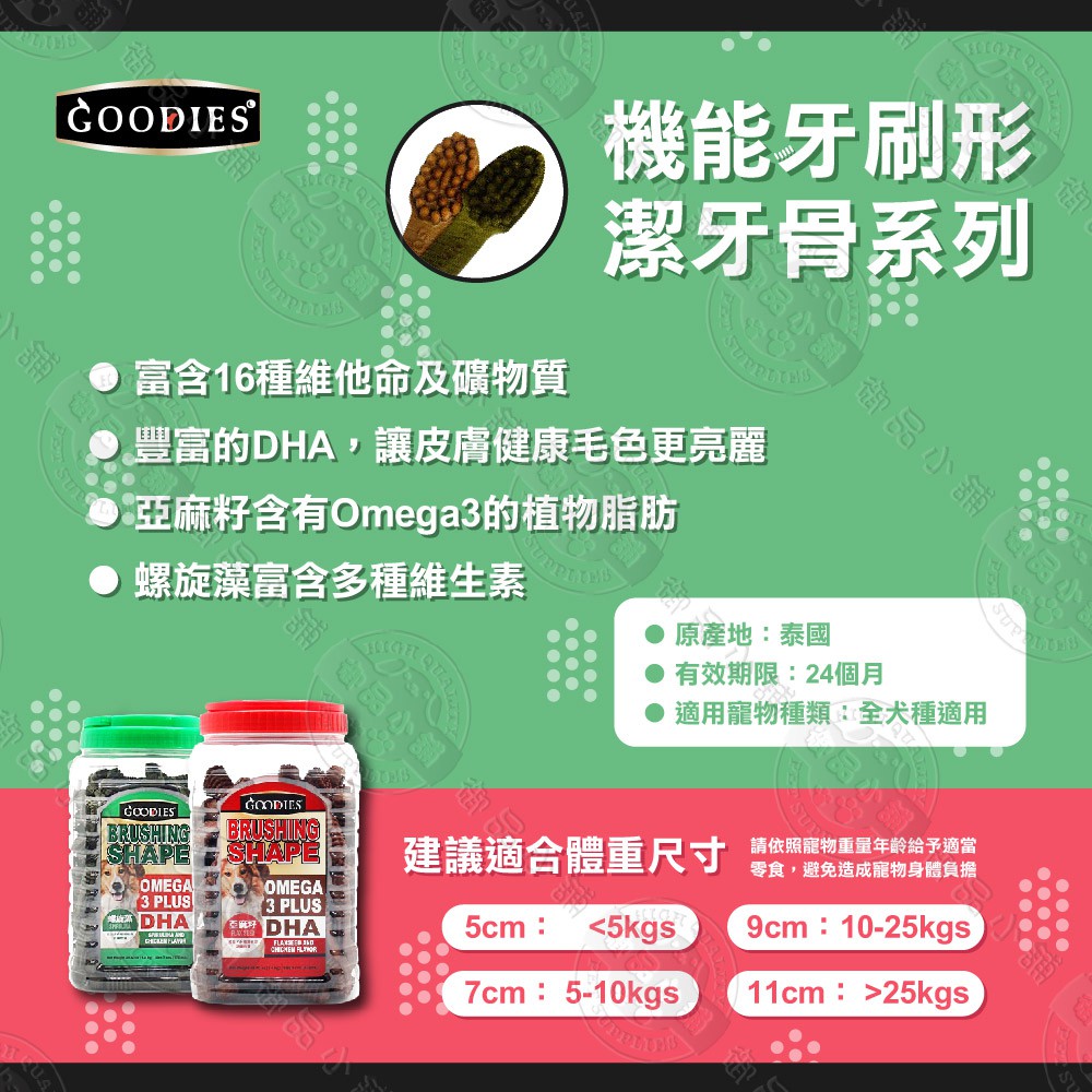 GOODIES 固迪斯 機能牙刷形潔牙骨 1.4kg 螺旋藻/亞麻籽 多尺寸可選 磨牙 狗零食 潔牙棒