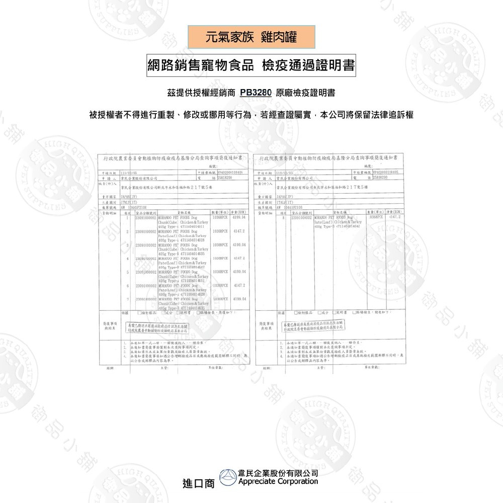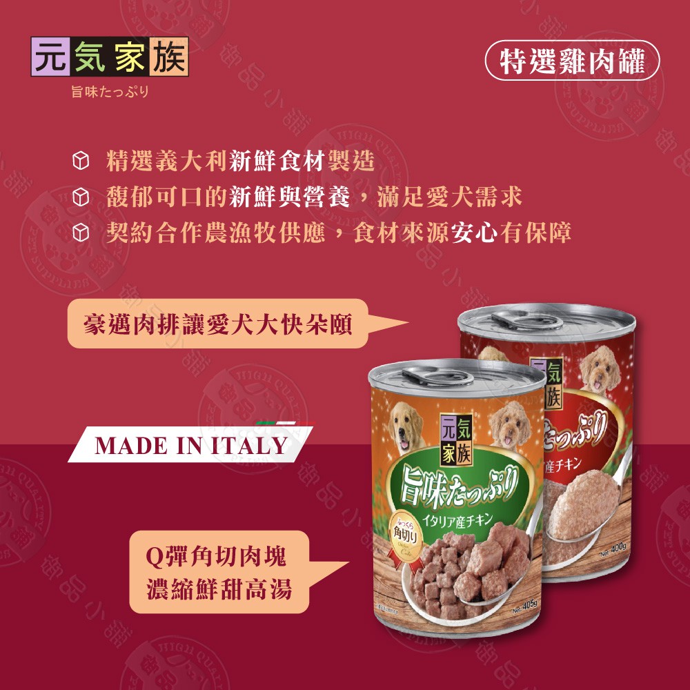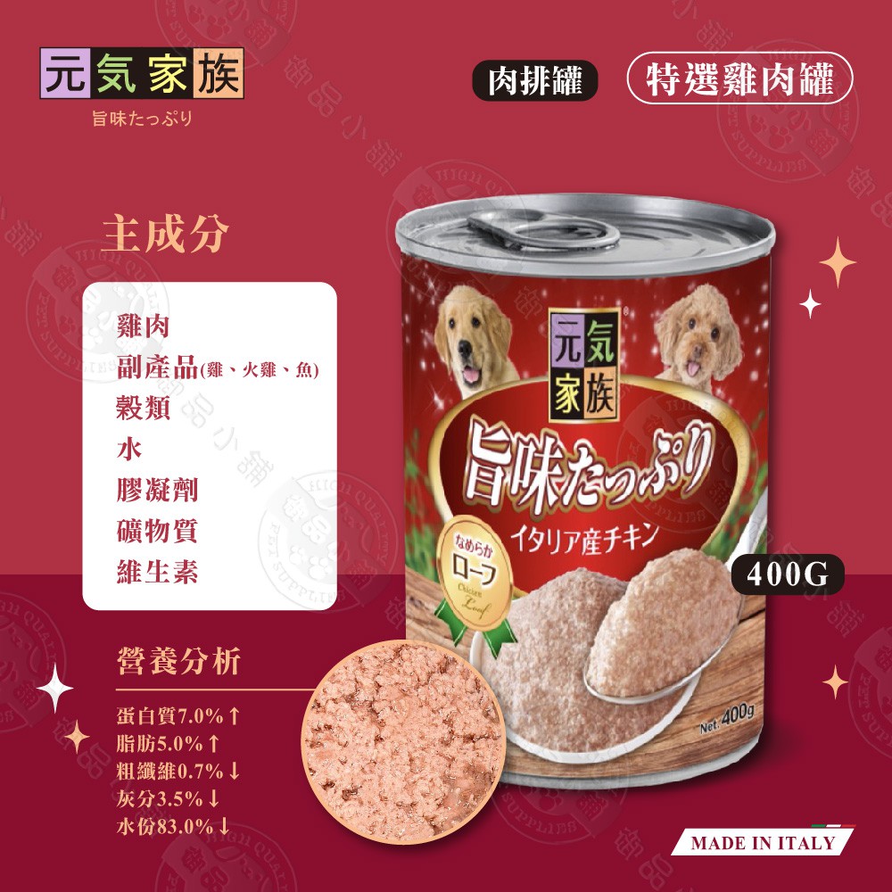 元氣家族 特選雞肉罐 狗罐頭 400G 角切罐 肉排罐 大狗罐 超值罐 雞肉口味 浪浪首選 義大利 主食罐