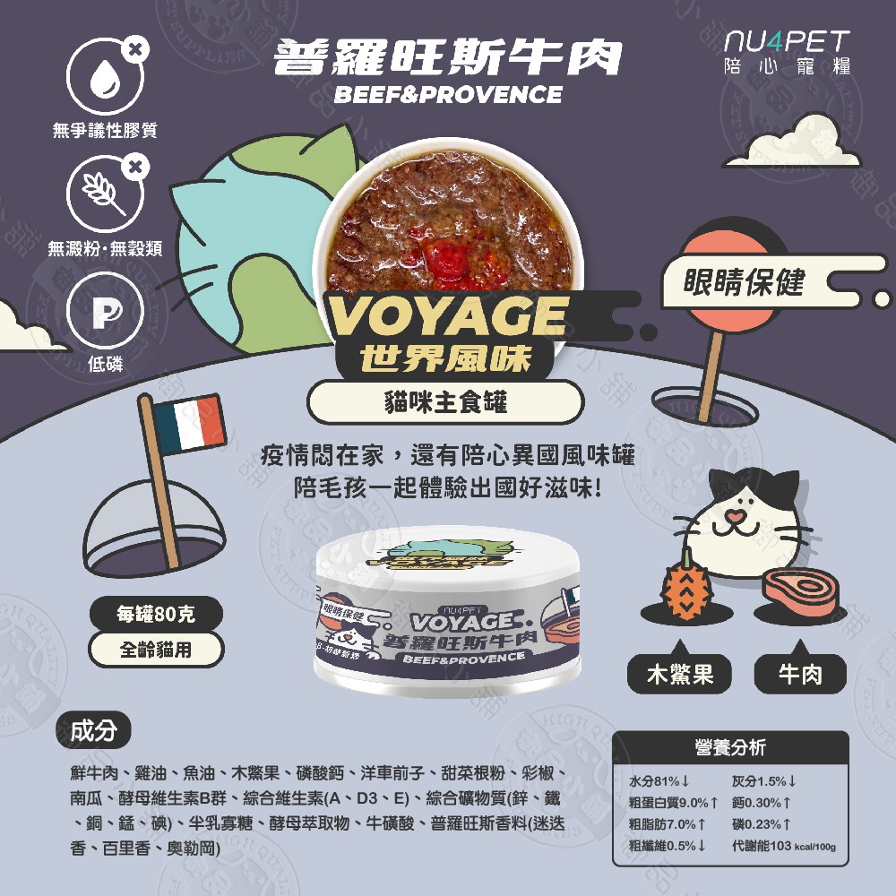 陪心寵糧 NU4PET 貓貓 世界風主食罐 80g 多罐組 貓主食罐 無膠 無榖 低磷 貓罐
