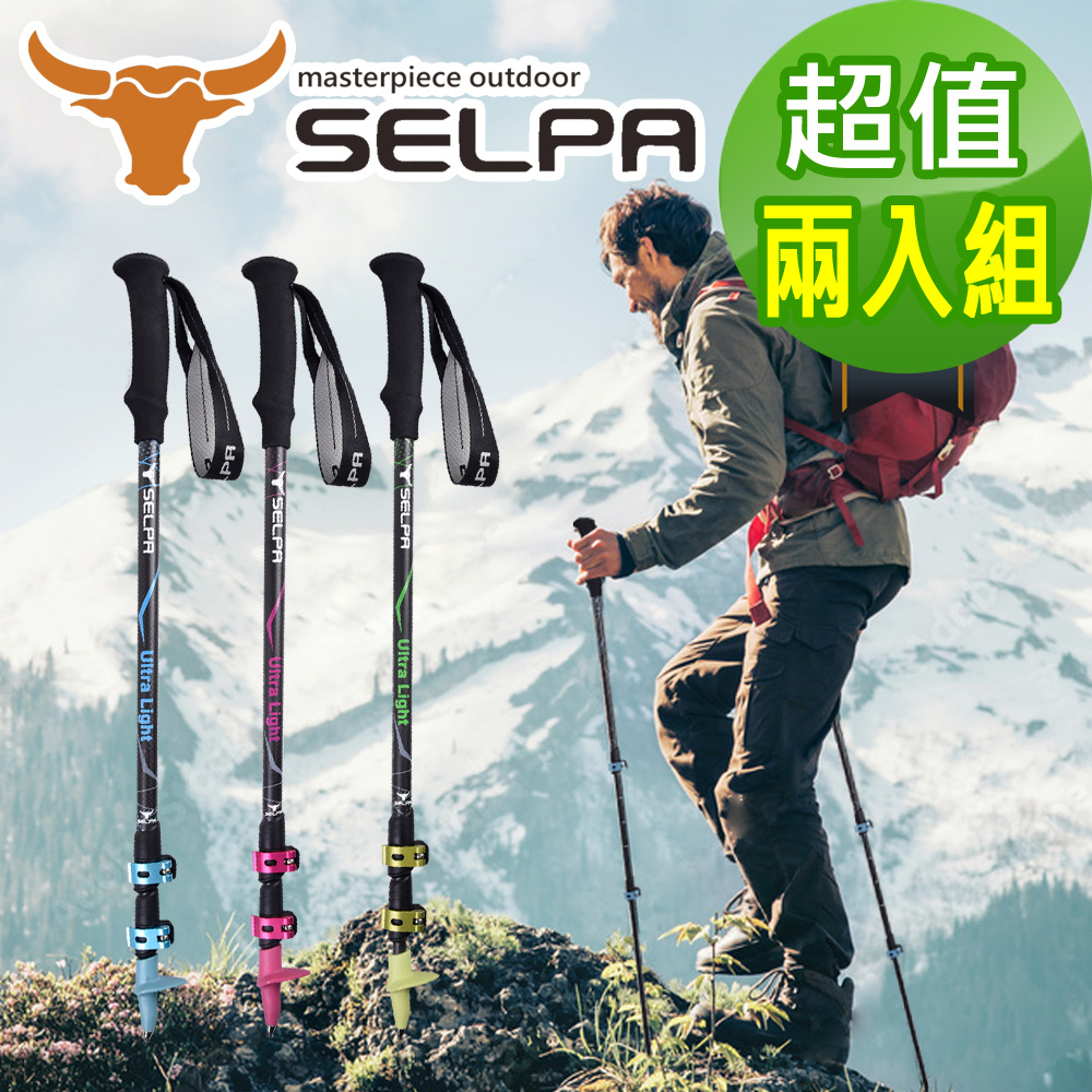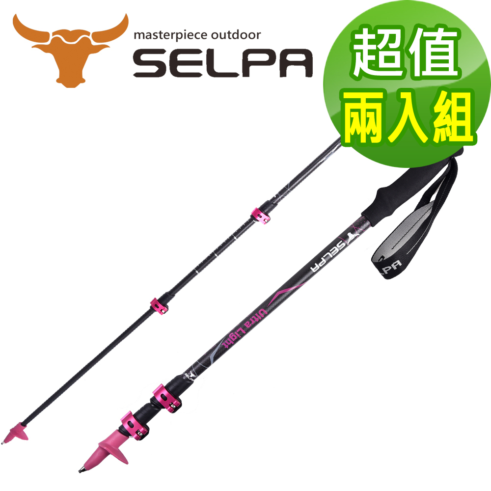 【韓國SELPA】凜淬碳纖維三節式外鎖登山杖(三色任選)(超值兩入組)|(台灣24h出貨)